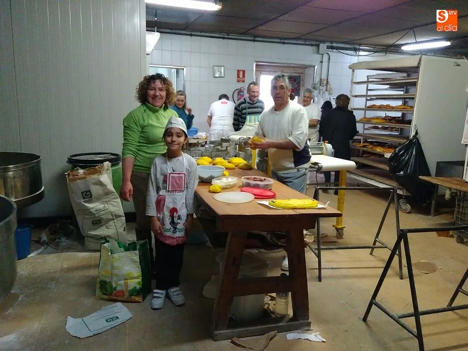 Un año más, el Lunes de Aguas está a la vuelta de la esquina para que mañana los vecinos de la villa disfruten del sabroso hornazo. Pero para poder hincar el diente a tan sabroso producto salmantino, hay que prepararlo primero. Lunes de Aguas? domingo de horno, o al menos así lo viven en las diferentes panaderías de Guijuelo que han recibido esta mañana la visita de cientos de personas que han acudido a preparar sus propios hornazos para darle un toque personal. Ya sea solos o bien en familia, numerosos guijuelenses han puesto manos en la masa para cumplir mañana con la tradición.