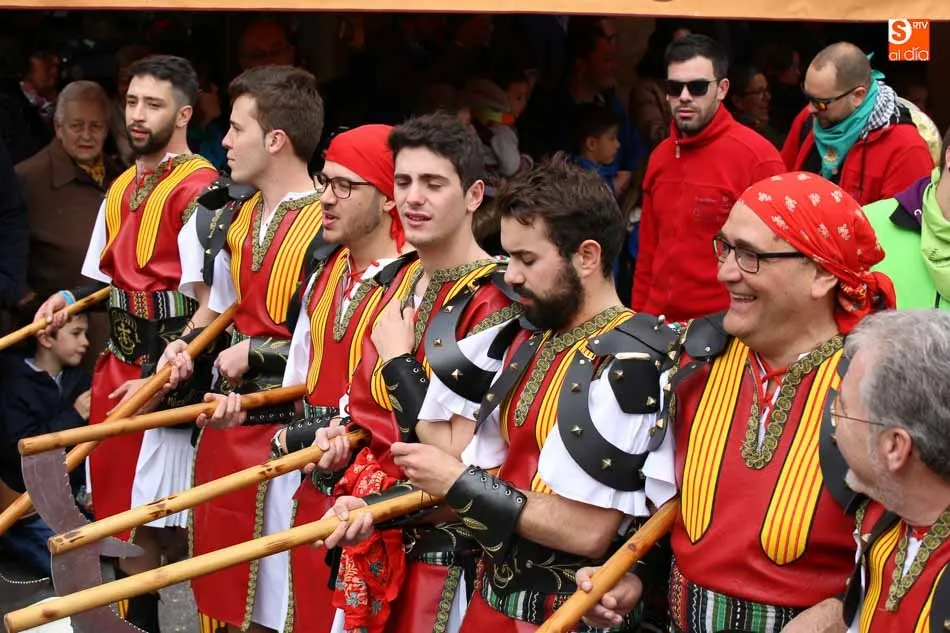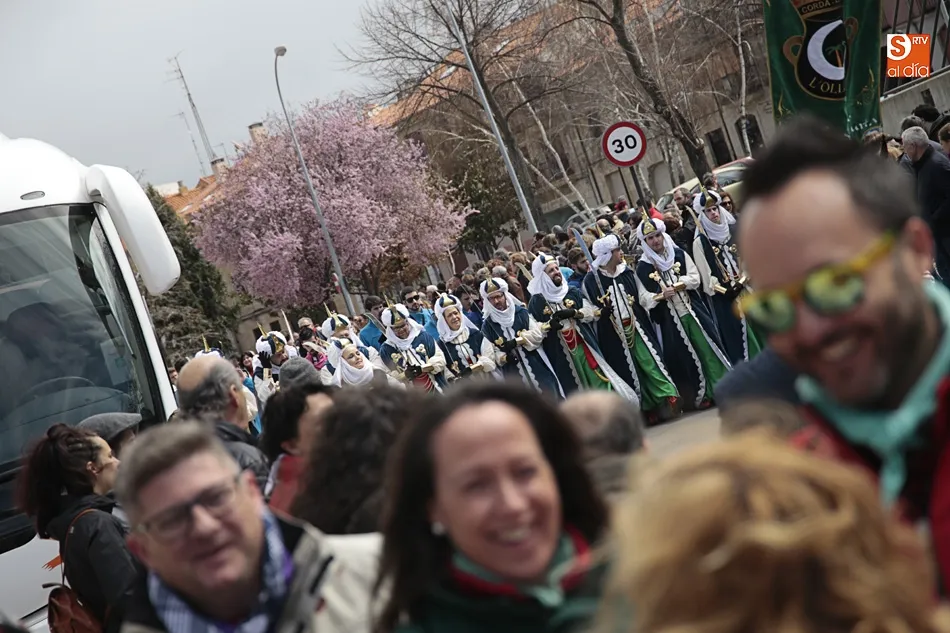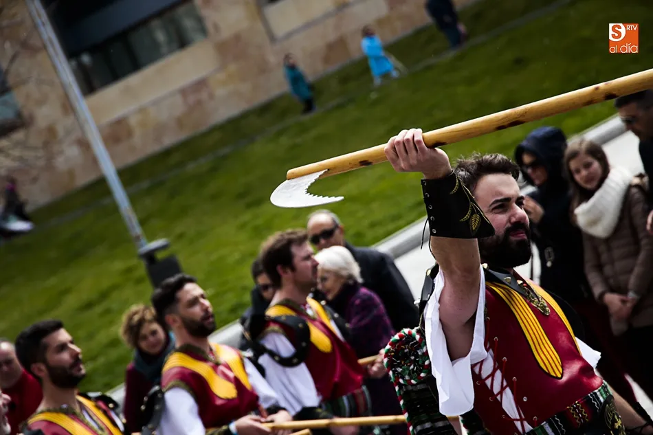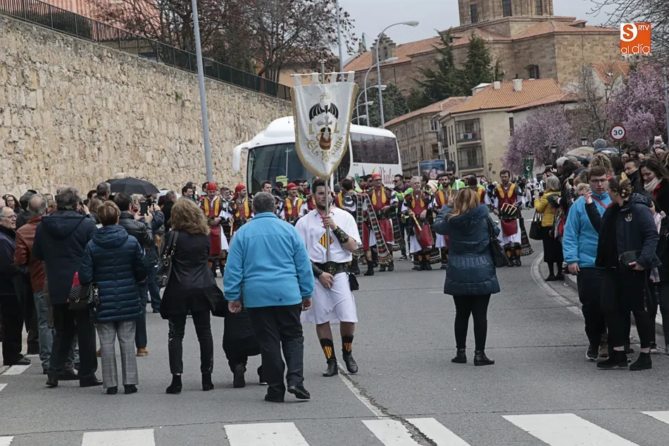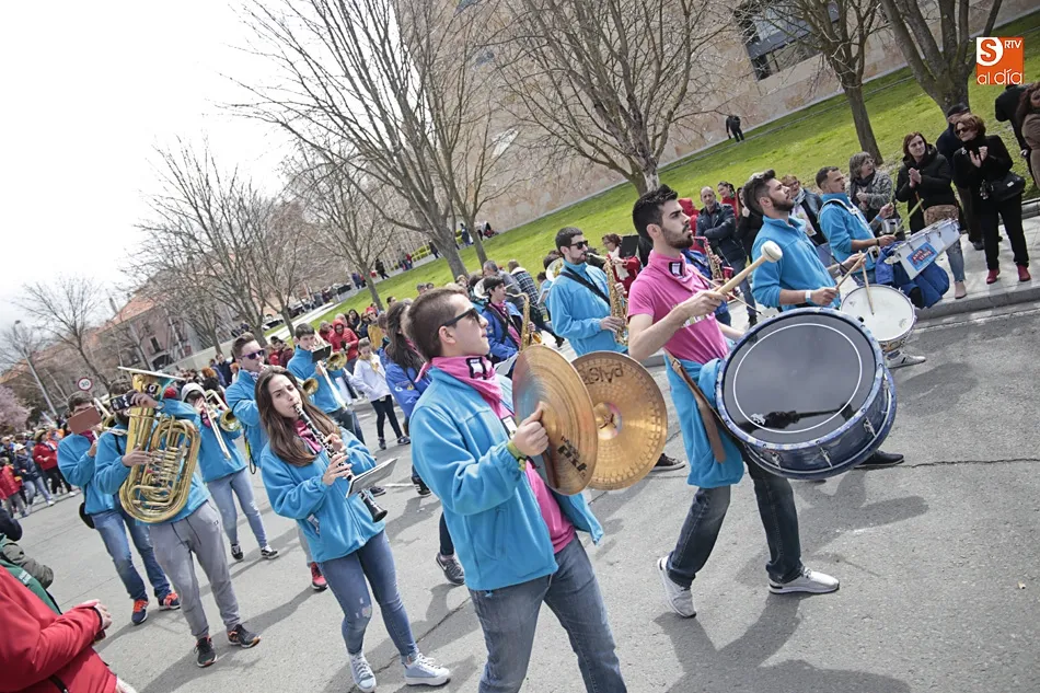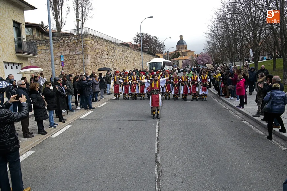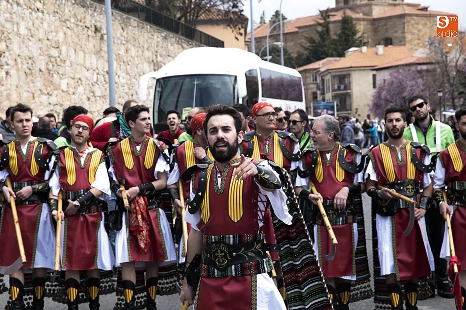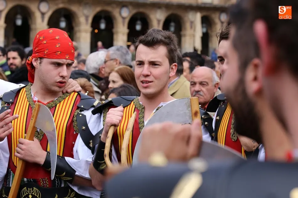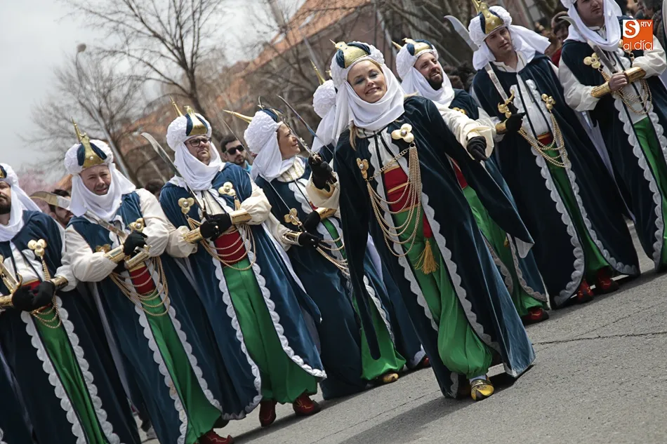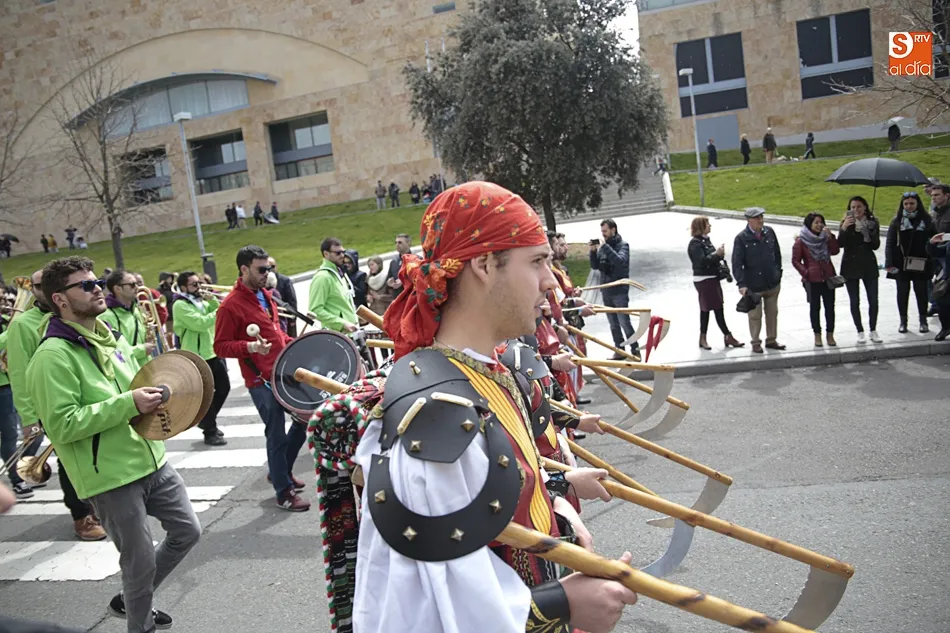 La Plaza Mayor de Salamanca se ha transformado este domingo en el escenario del singular y colorido desfile de Moros y Cristianos hasta la Vaguada de la Palma, dentro de las actividades más destacadas que durante todo el fin de semana han programado la Asociación Cultural Fallers Pel Mónhan para contagiar a Salamanca del ambiente festivo de las Fallas. Numeroso público se ha congregado en las calles por las que ha transitado el desfile.