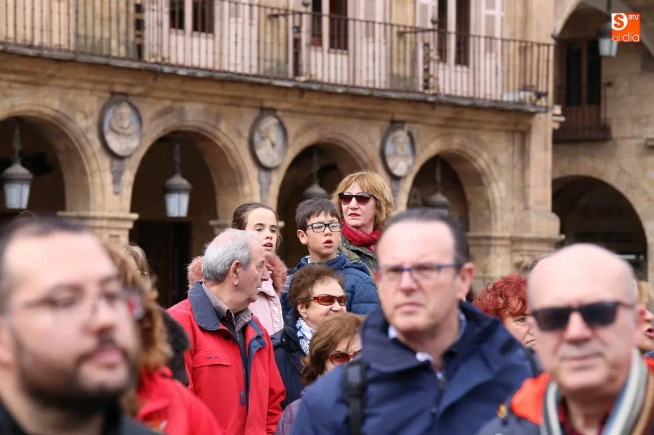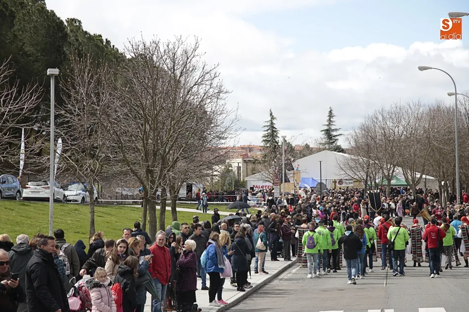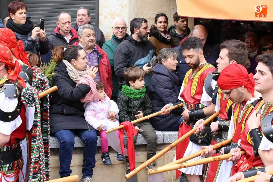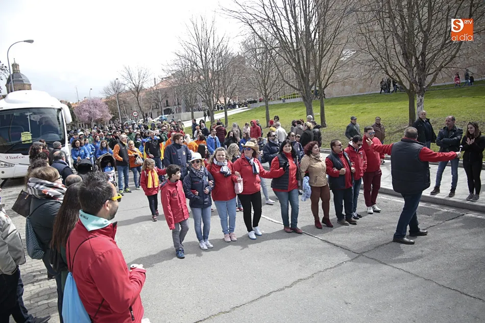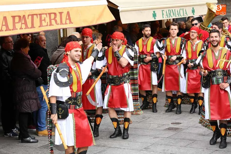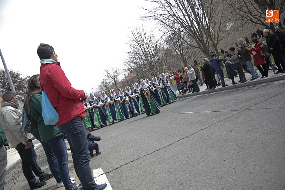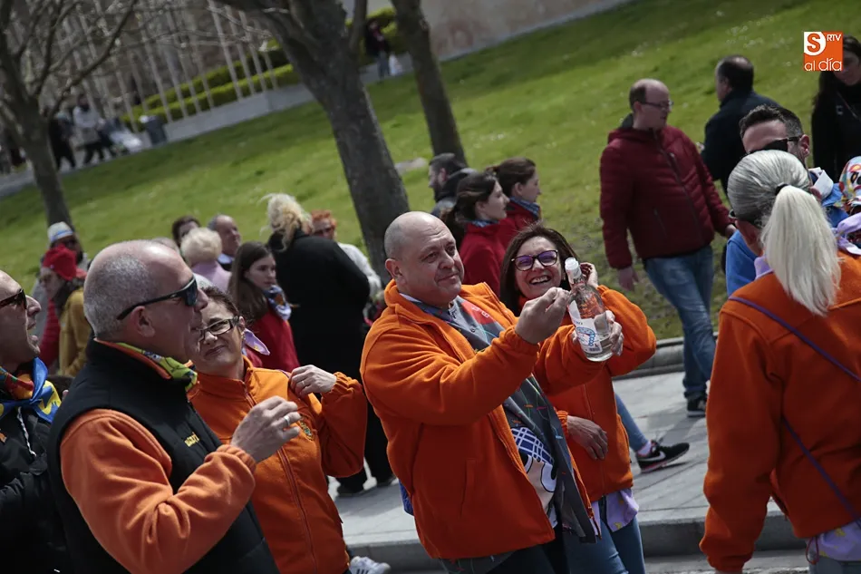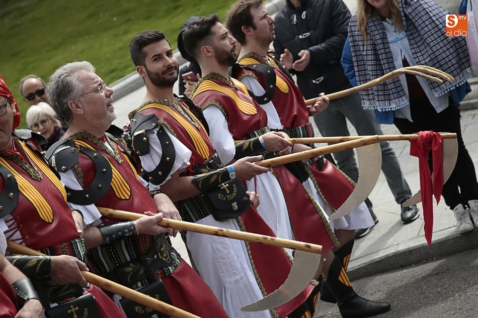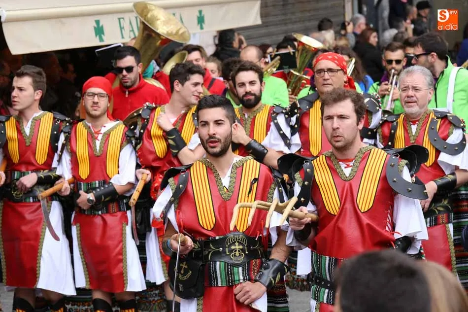 La Plaza Mayor de Salamanca se ha transformado este domingo en el escenario del singular y colorido desfile de Moros y Cristianos hasta la Vaguada de la Palma, dentro de las actividades más destacadas que durante todo el fin de semana han programado la Asociación Cultural Fallers Pel Mónhan para contagiar a Salamanca del ambiente festivo de las Fallas. Numeroso público se ha congregado en las calles por las que ha transitado el desfile.