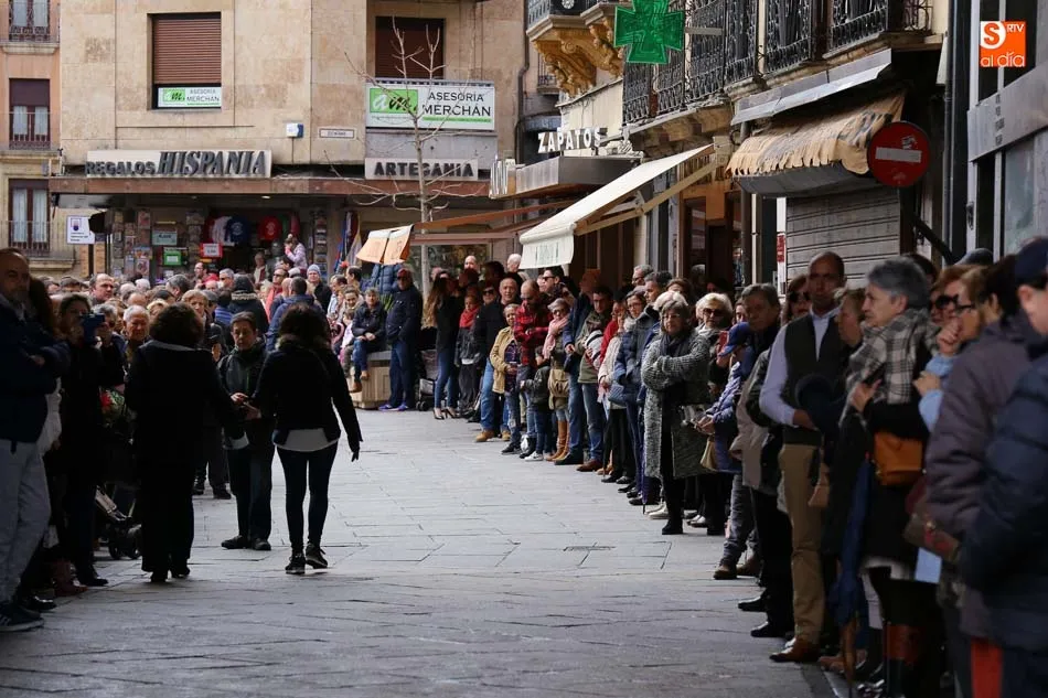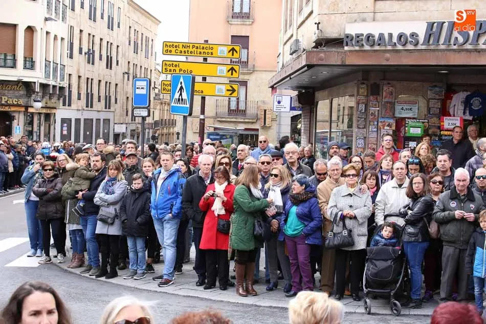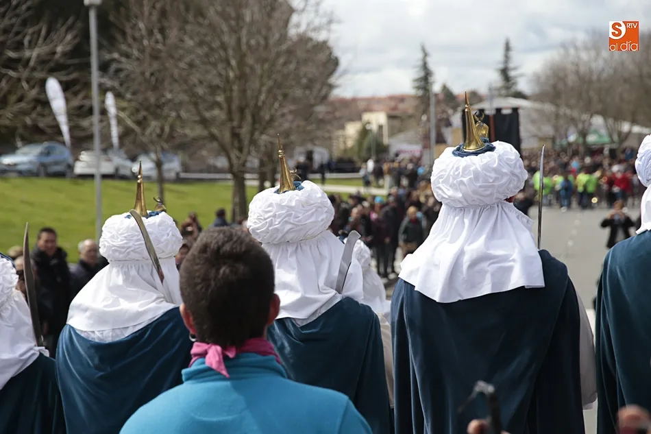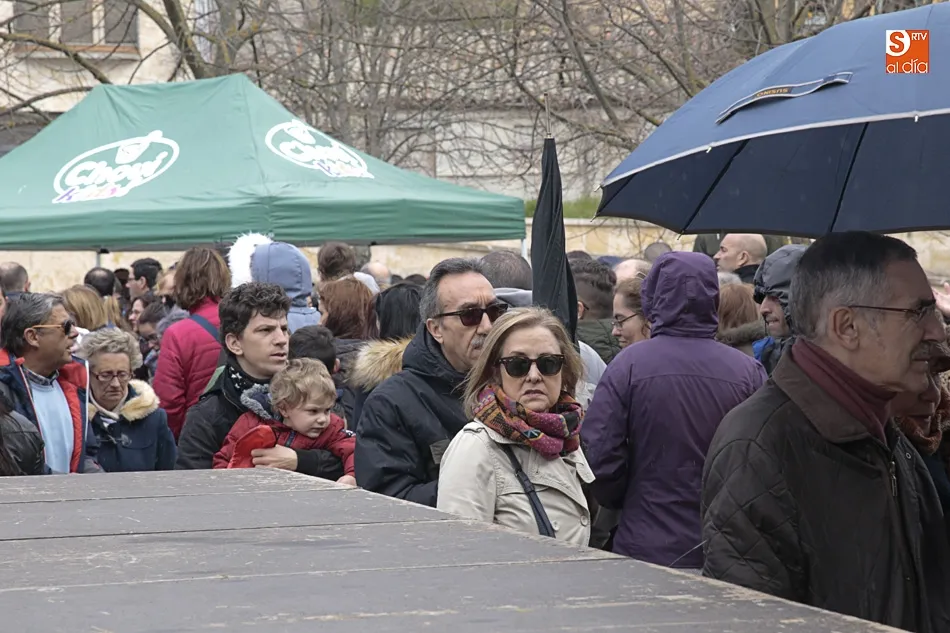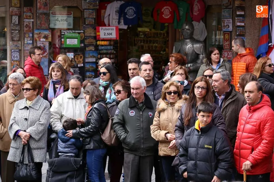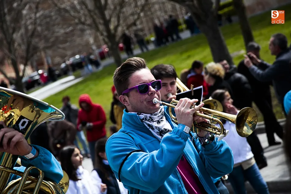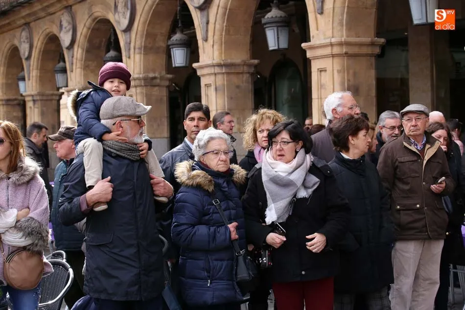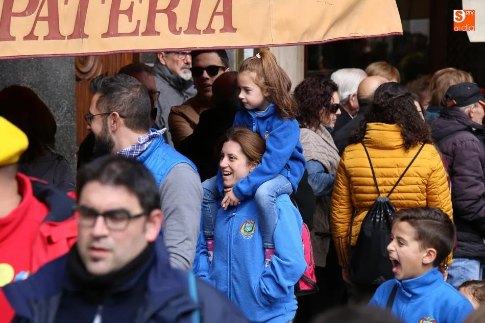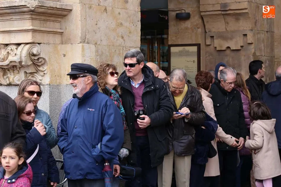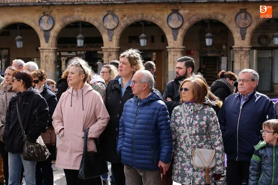 La Plaza Mayor de Salamanca se ha transformado este domingo en el escenario del singular y colorido desfile de Moros y Cristianos hasta la Vaguada de la Palma, dentro de las actividades más destacadas que durante todo el fin de semana han programado la Asociación Cultural Fallers Pel Mónhan para contagiar a Salamanca del ambiente festivo de las Fallas. Numeroso público se ha congregado en las calles por las que ha transitado el desfile.