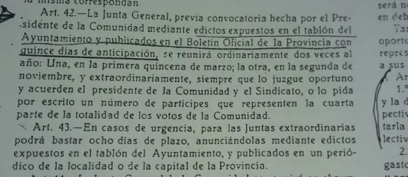 Concretamente, los estatutos de la Comunidad de Regantes marcan que la convocatoria de las Asambleas ordinarias debe ser realizada mediante edictos expuestos en el tablón del Ayuntamiento y publicados en el Boletín Oficial de la Provincia ?con quince días de antelación?, mientras que en el caso de las extraordinarias, ?podrá bastar 8 días de plazo?.