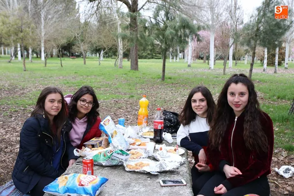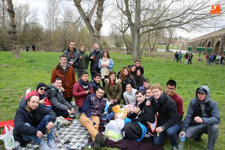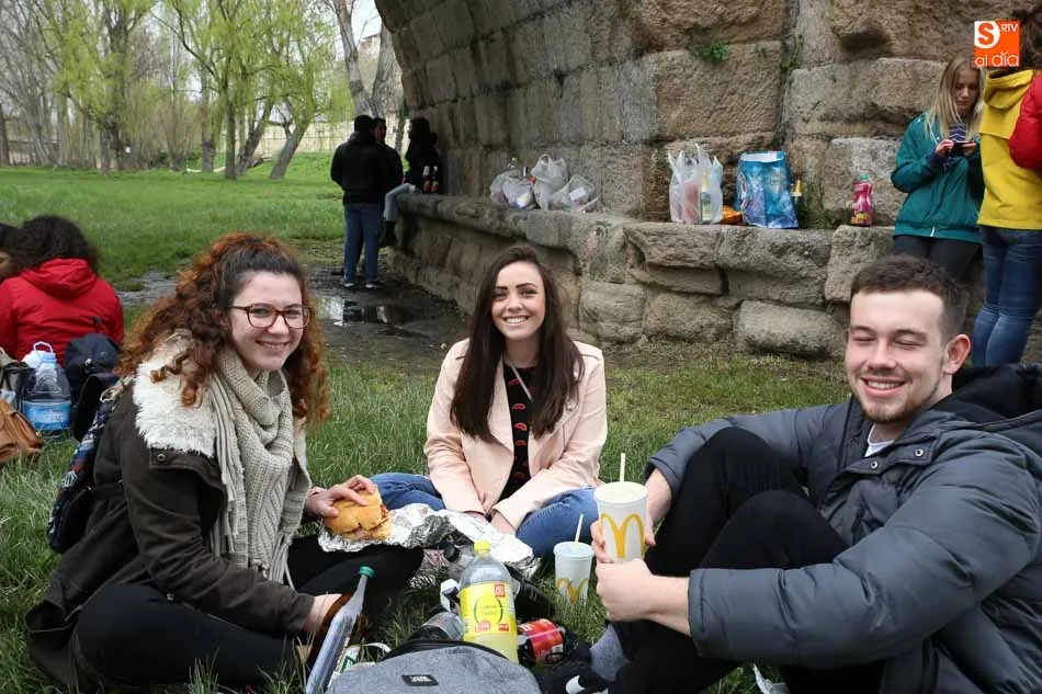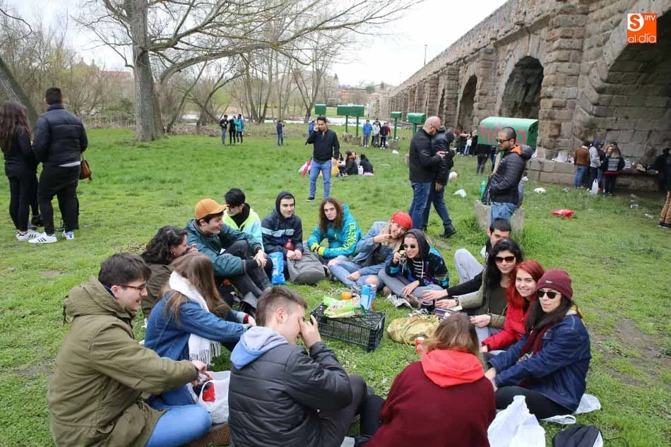 Tal y como se esperaba, el mal tiempo, con lluvia y frío, ha condicionado el desarrollo de este Lunes de Aguas en Salamanca. La popular merienda campestre en lugares como la Aldehuela, el Parque Fluvial o los entornos del Puente Romano, entre otros espacios verdes de la capital charra, se ha visto alterada por estas adversas condiciones meteorológicas.