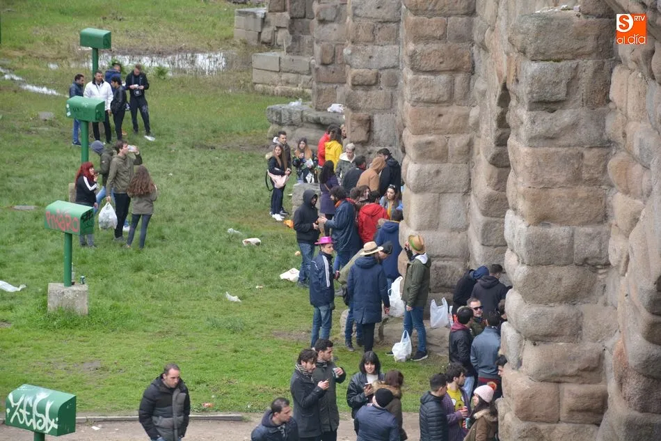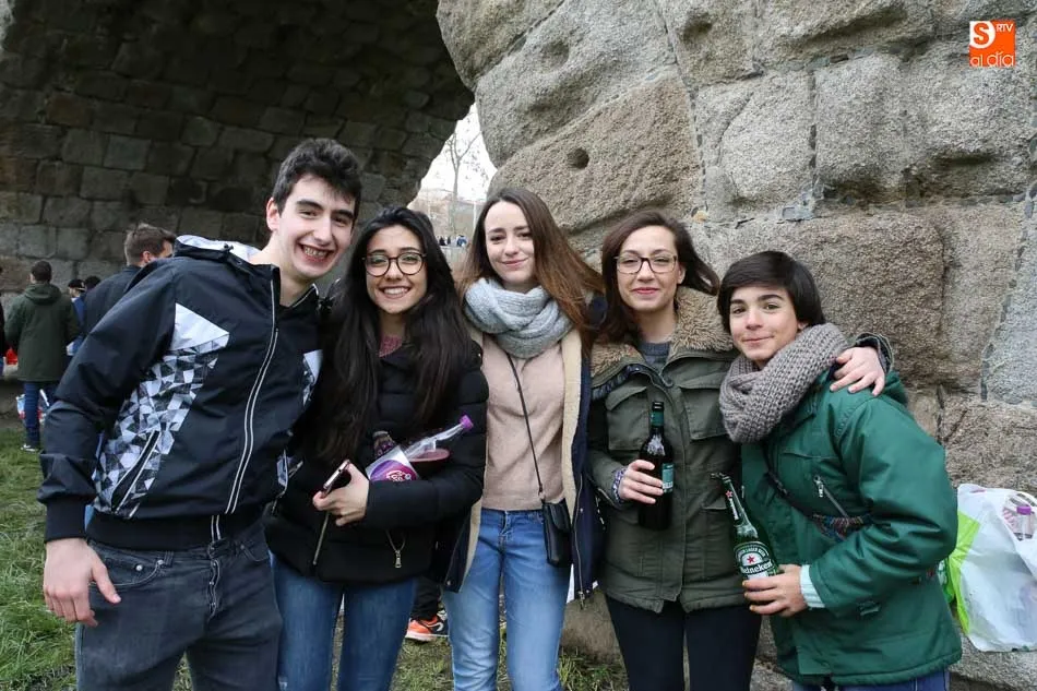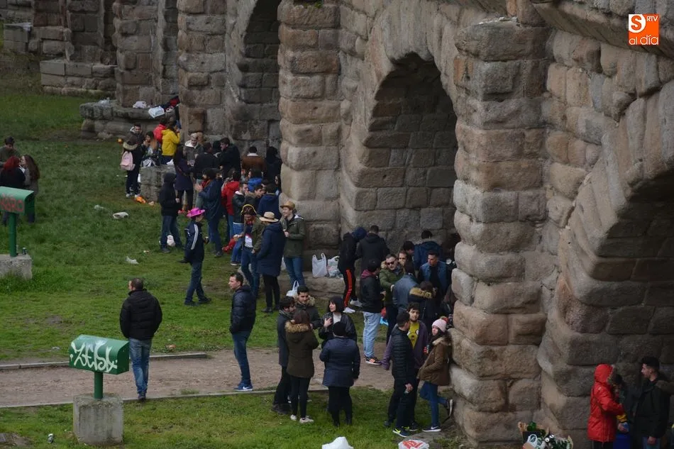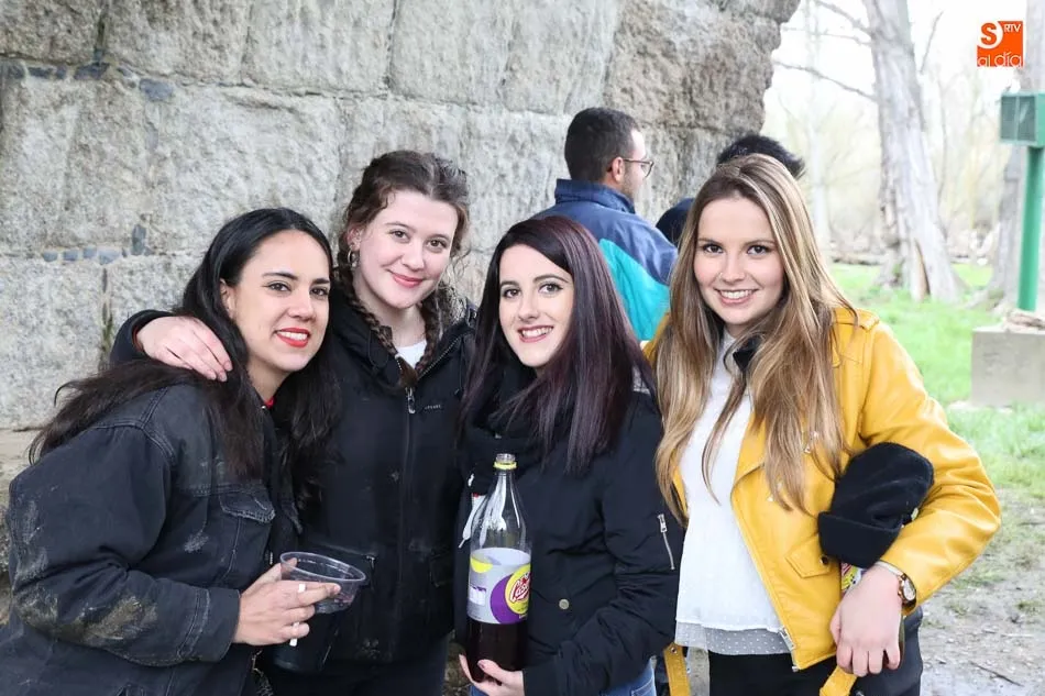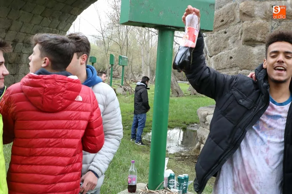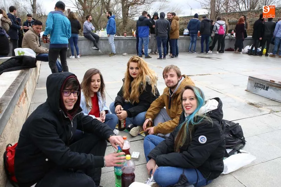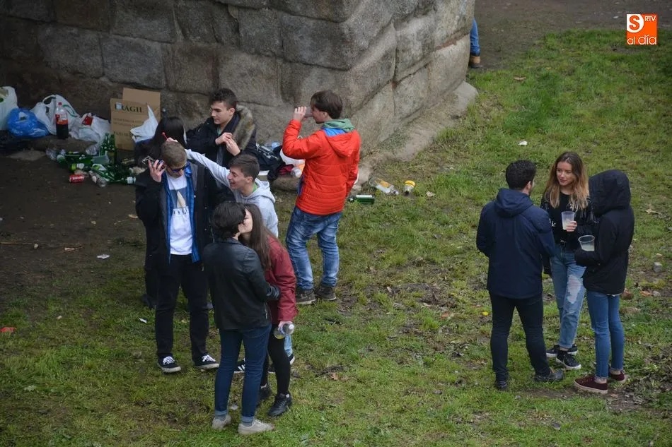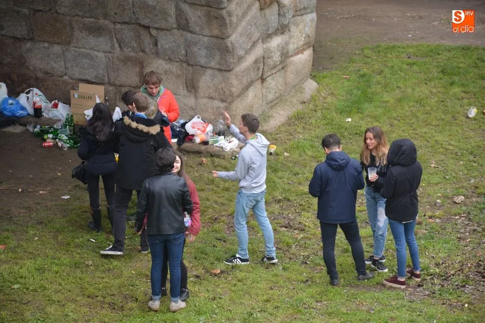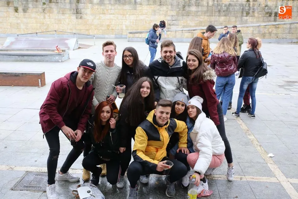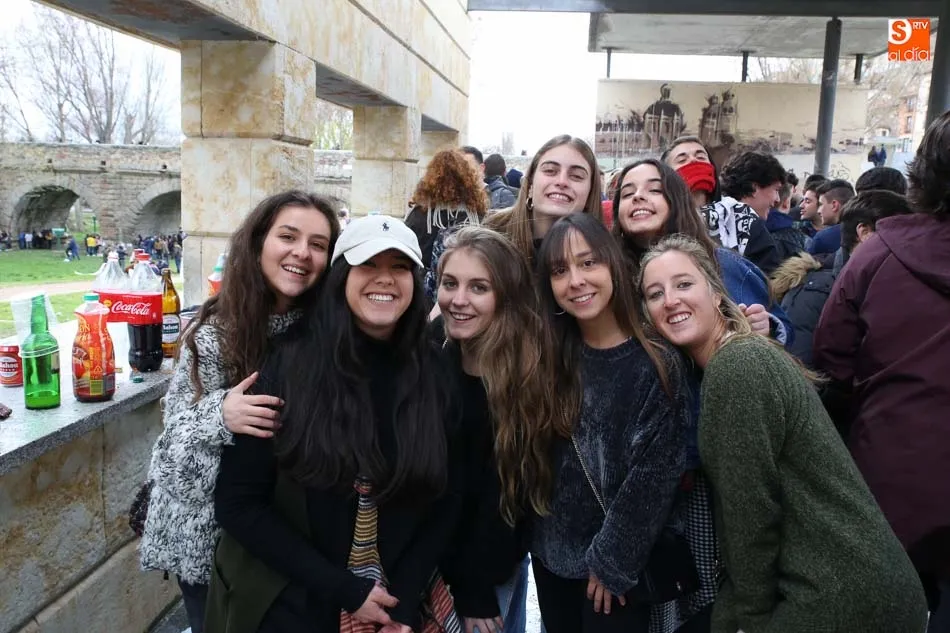 Sólo algunos grupos de jóvenes se atrevieron a desafiar a la climatología, para celebrar esta tradicional fiesta