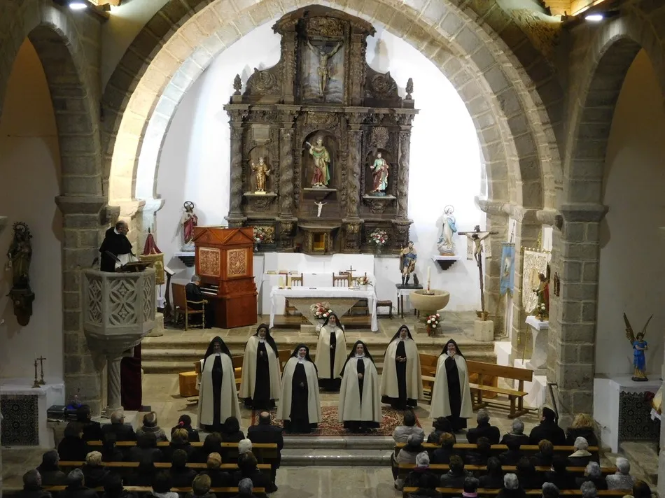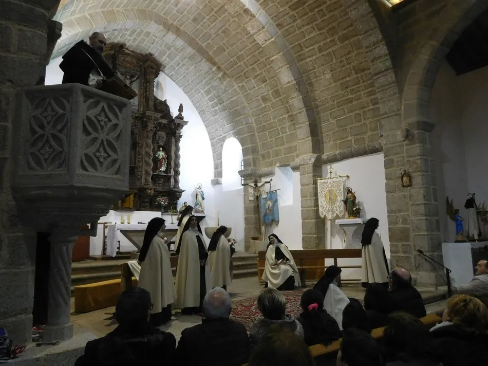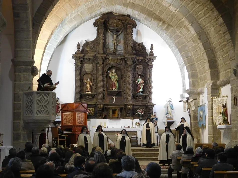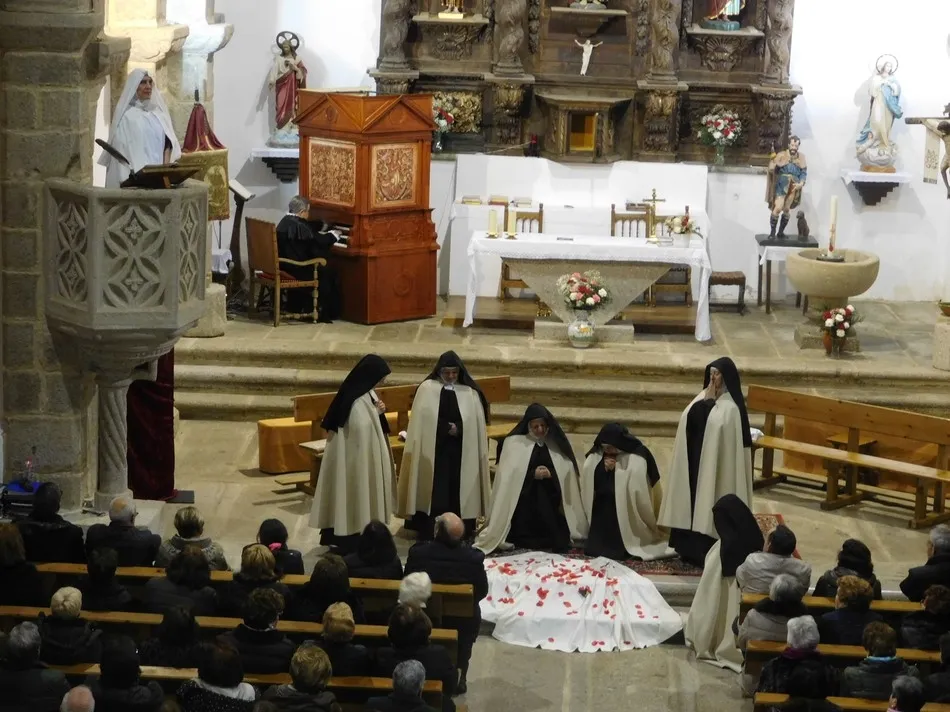 Enmarcados los cuadros escénicos en la Capilla Mayor de san Bartolomé, que seguramente provenga del XIII, recordamos a los monjes-caballeros del Temple, bajo cuya Encomienda estaba Los Santos en aquella época. Como ellos, las hermanas carmelitas de Teresa, que aparecen en escena, defienden a su denostada madre como auténticos soldados movidos por la fe y aleccionados por un espíritu indómito de libertad y justicia. Frente a ellas, un púlpito de piedra berroqueña alberga como en tantos otros periodos de su historia otra arenga totalmente opuesta a la que se escucha en escena, la sin razón de la Inquisición. Sin embargo la dialéctica que entre ambas perspectivas se desarrolla va dibujando con todo su colorido la vida convertida en obra de la mujer que fue Teresa con su inteligencia y cotidianidad; su espiritualidad y razón, ante lo que los hombres no tuvieron más remedio que reconocer su doctorado civil y religioso. Y muchas mujeres de su época descubrieron la capacidad de elección.