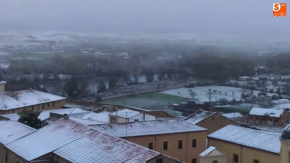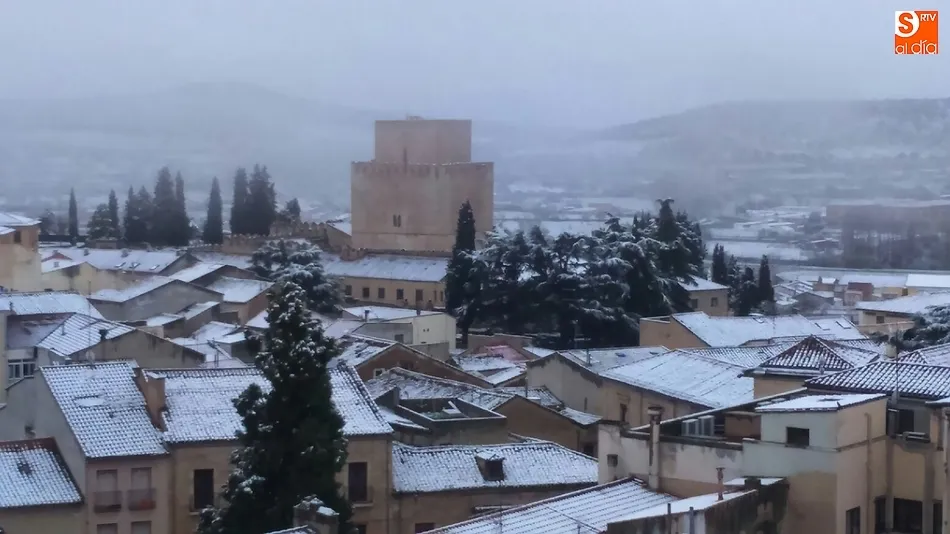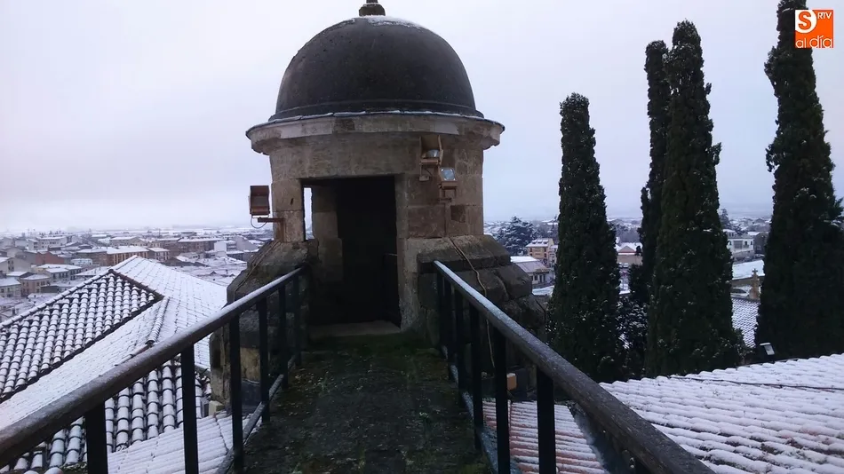 La nueva nevada, desde lo alto de la Catedral   | Imagen 1Evidentemente, la panorámica es aún más espectacular cuando se está en alguno de los dos puntos más altos de Ciudad Rodrigo: la Torre de las Campanas de la Catedral de Santa María y lo más alto de la Torre del Homenaje del Parador de Turismo de Enrique II de Trastámara, desde los cuales se pueden comprobar a la perfección los efectos en el centro histórico de la nieve, cubriendo por completo los tejados.