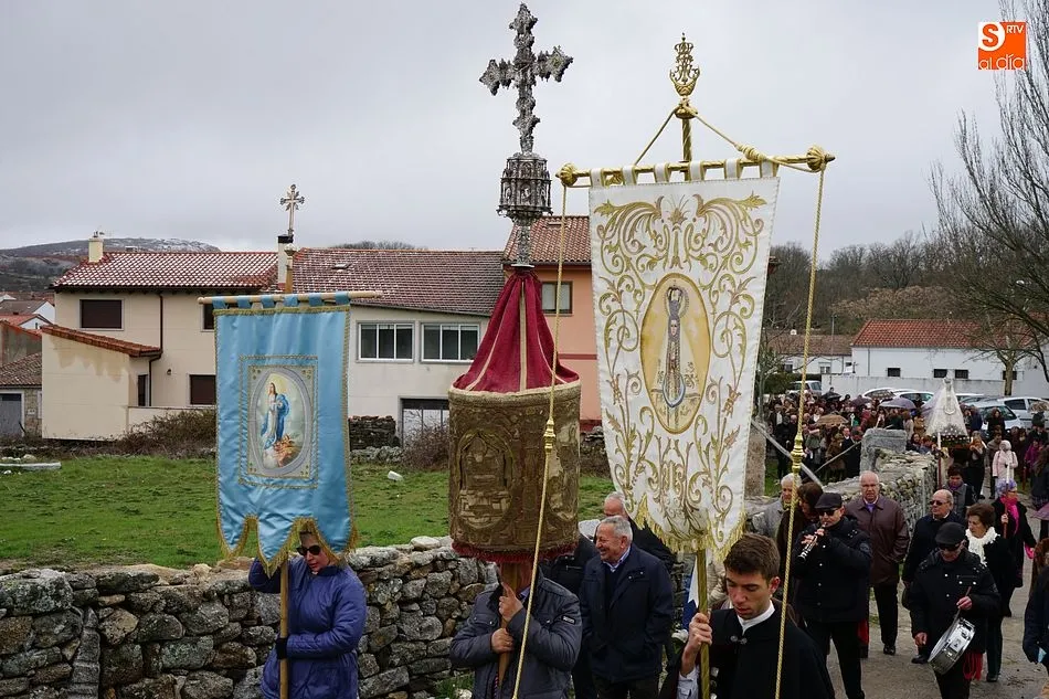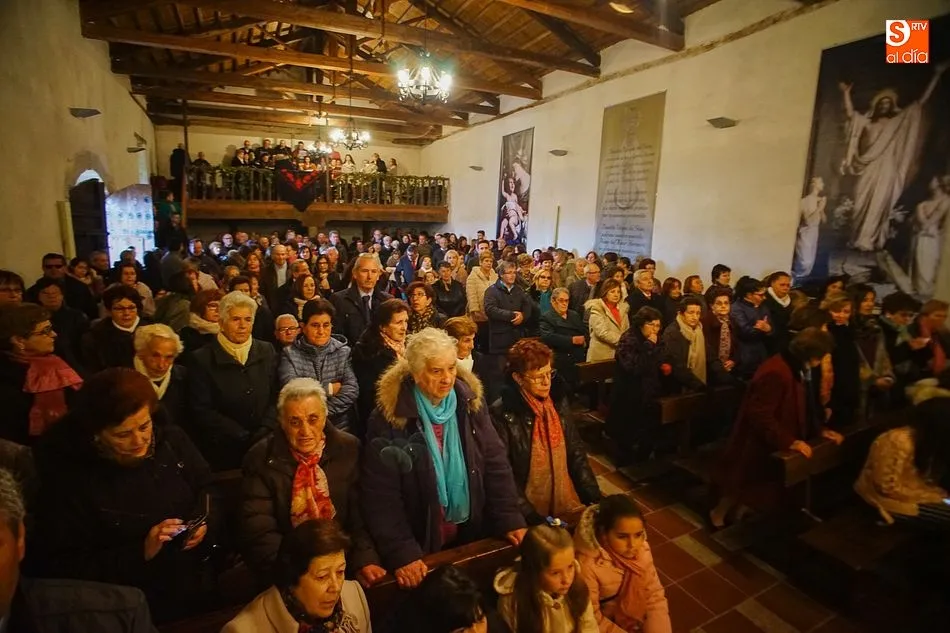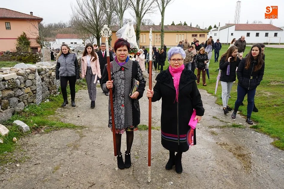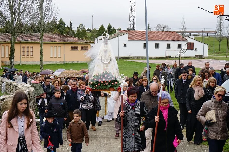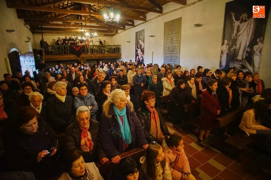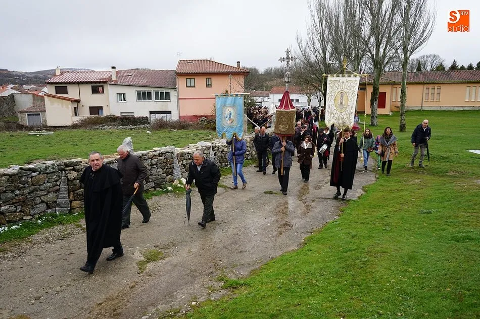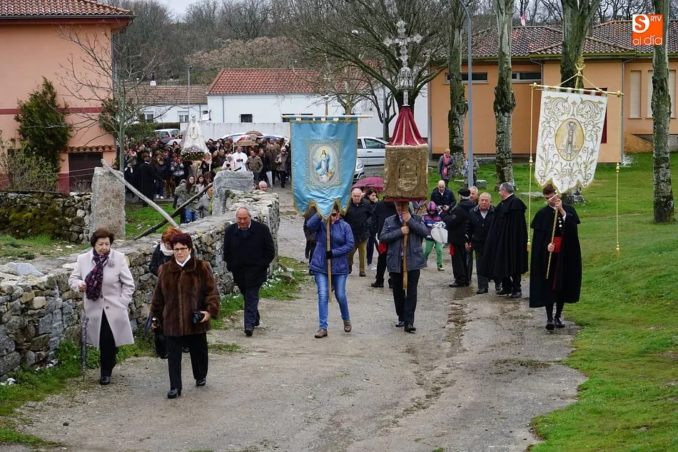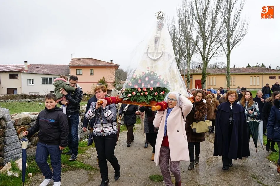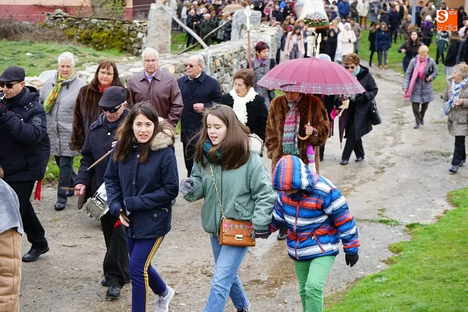 Cientos de fieles abarrotaron el pequeño templo aplaudiendo la llegada de la imagen, que fue preparada con sus mejores galas antes de ser devuelta al interior, donde se celebró la misa en su honor. Esta tarde, los vecinos cumplirán con la tradicional subasta en la puerta del templo junto a la recién instalada Picota de los Quintos.