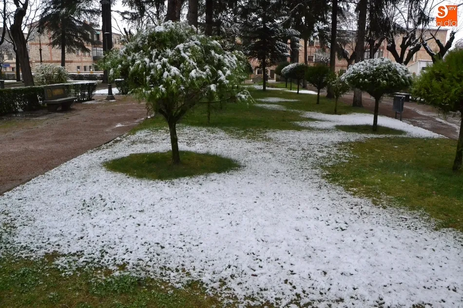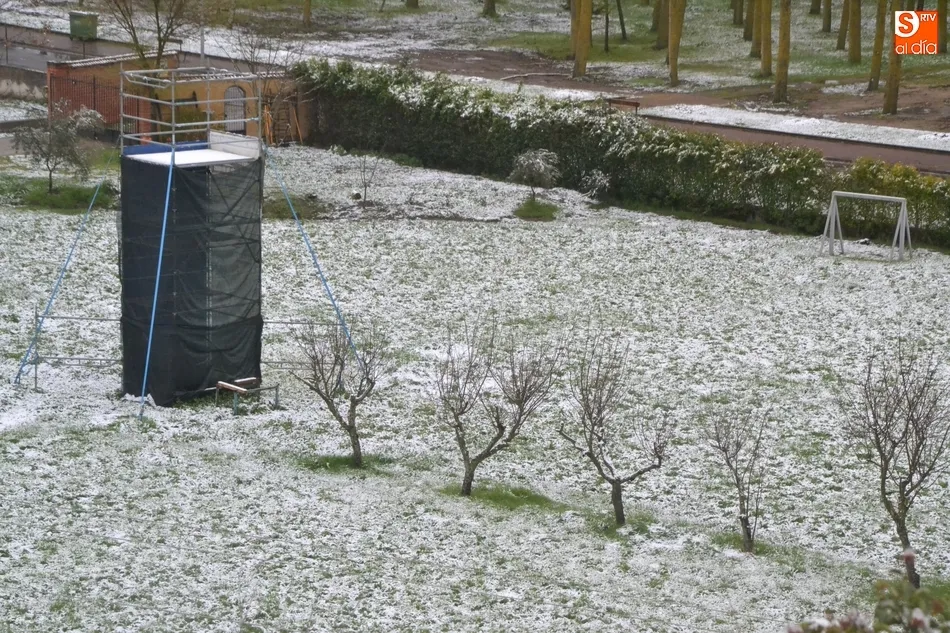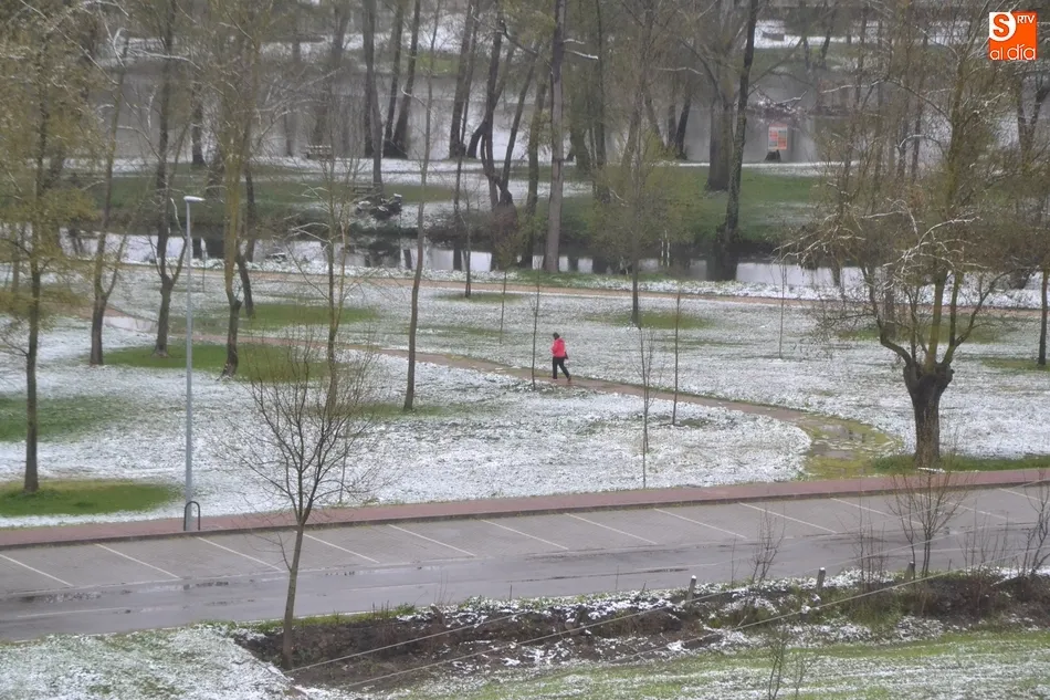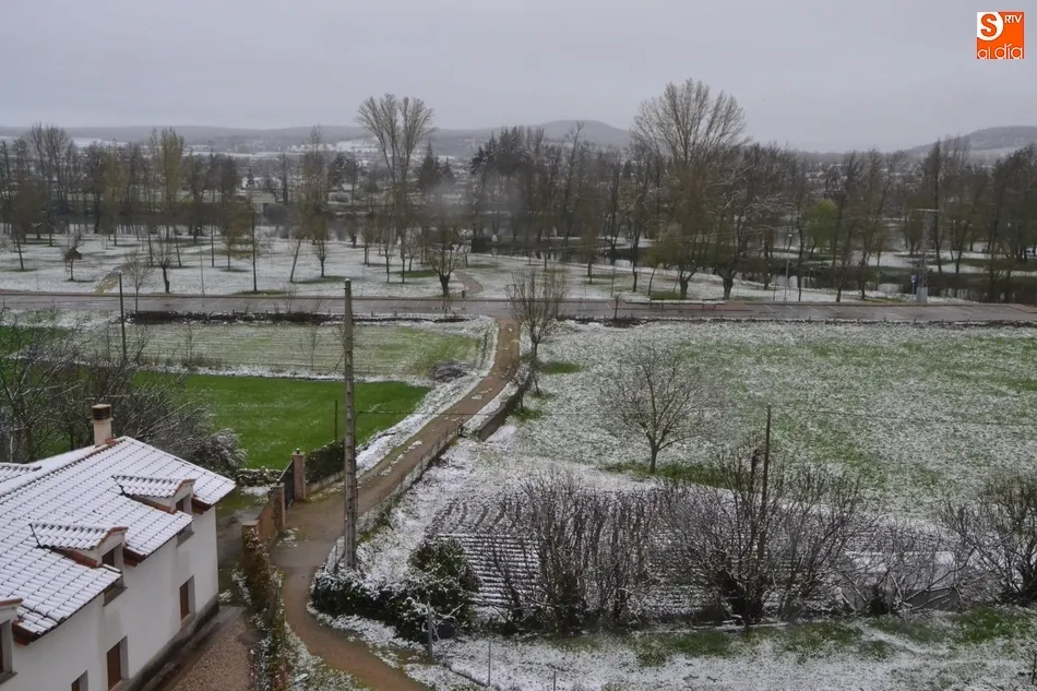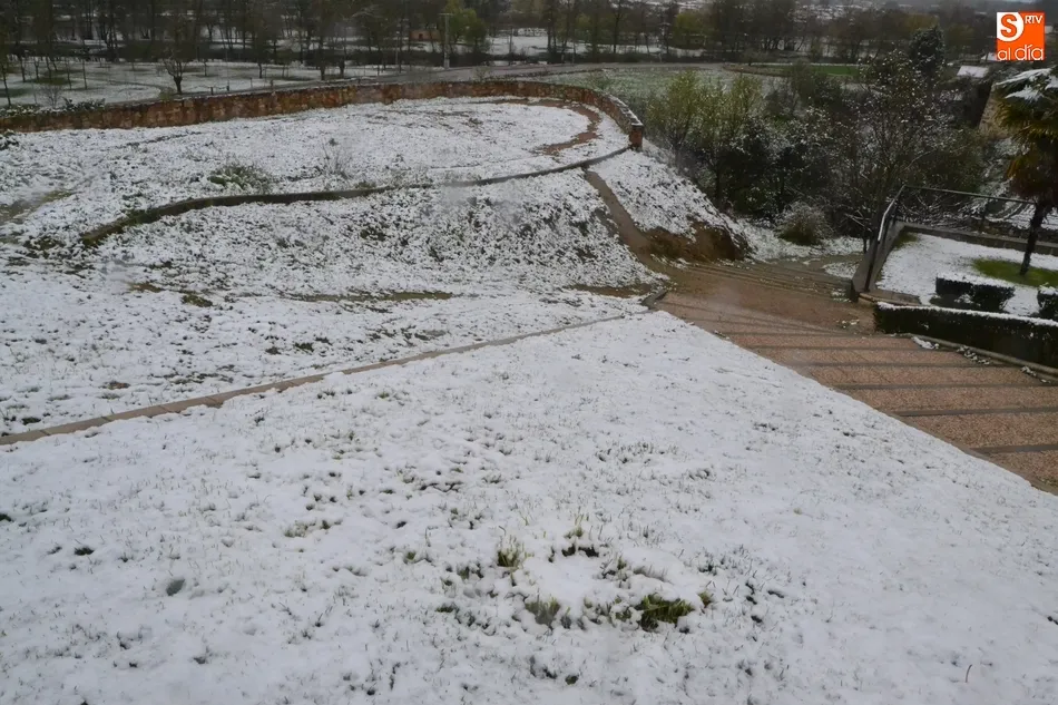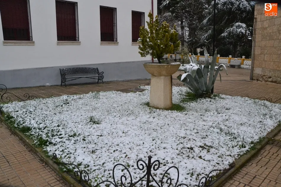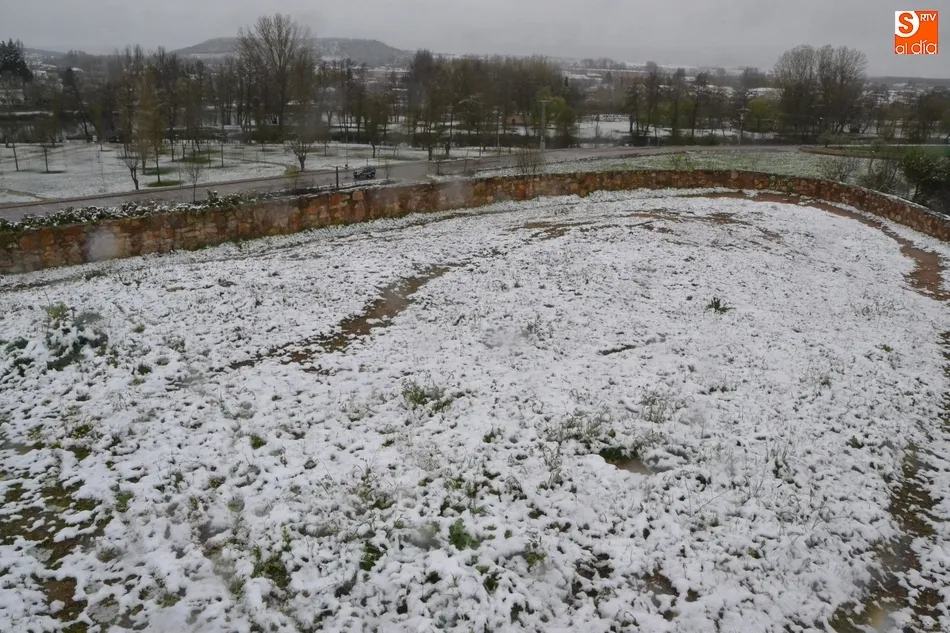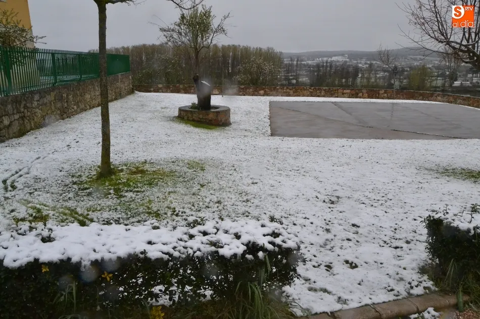 Un nuevo manto blanco cubre Miróbriga en el amanecer del Lunes de Aguas   | Imagen 1Además de que ya no ha causado tanta impresión al estar tan reciente el anterior manto blanco, esta nueva nevada ha tenido como gran diferencia que ha caído en día laborable, y no en uno cualquiera, sino en el del regreso a las aulas tras las vacaciones de Semana Santa de los alumnos de colegios e institutos, que se encontraron con la nieve en su camino hasta los centros educativos.