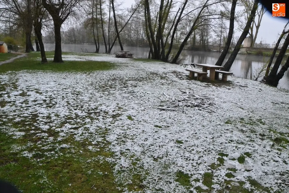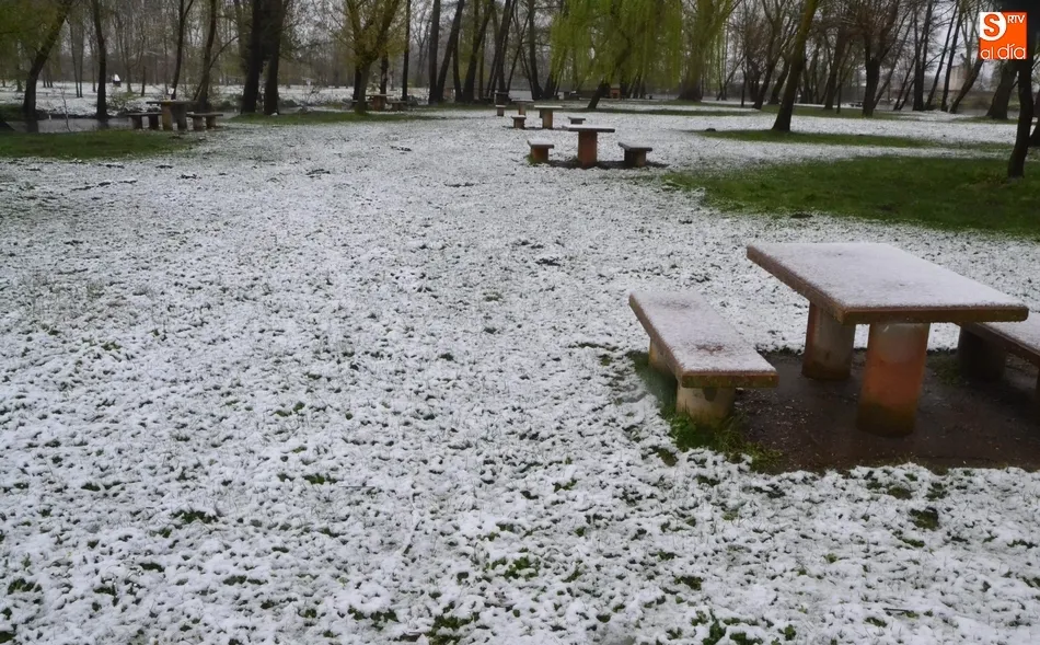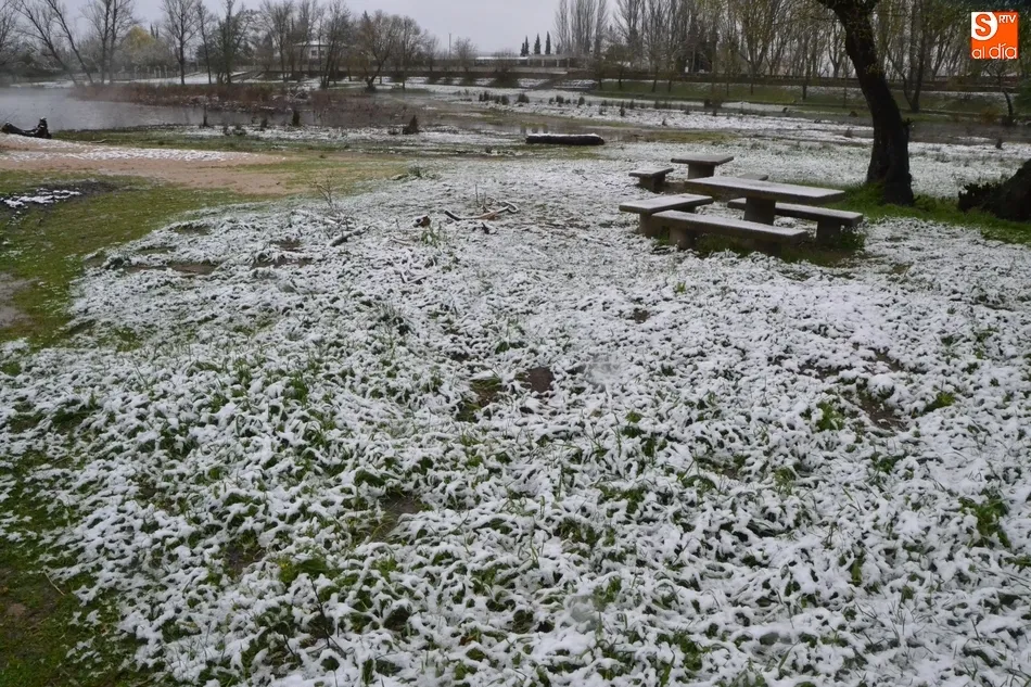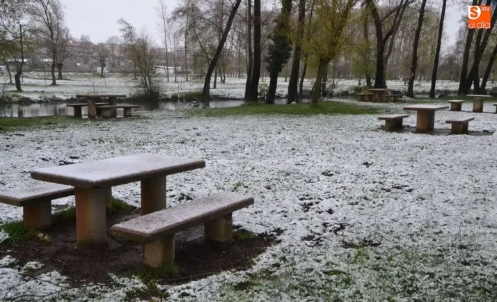 Sin duda, una de las imágenes más curiosas que ha dejado esta nevada es la de la isla de El Picón, cuyos bancos, mesas y césped han amanecido nevados en una jornada tan especial como es la del Lunes de Aguas cuando el año pasado, durante la tarde de este día, acogieron a cientos de personas en una espléndida jornada con altas temperaturas. Aunque la lluvia podría cesar a media tarde, parece que este año tocará comer el hornazo a cubierto.