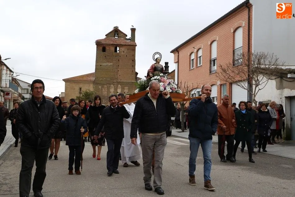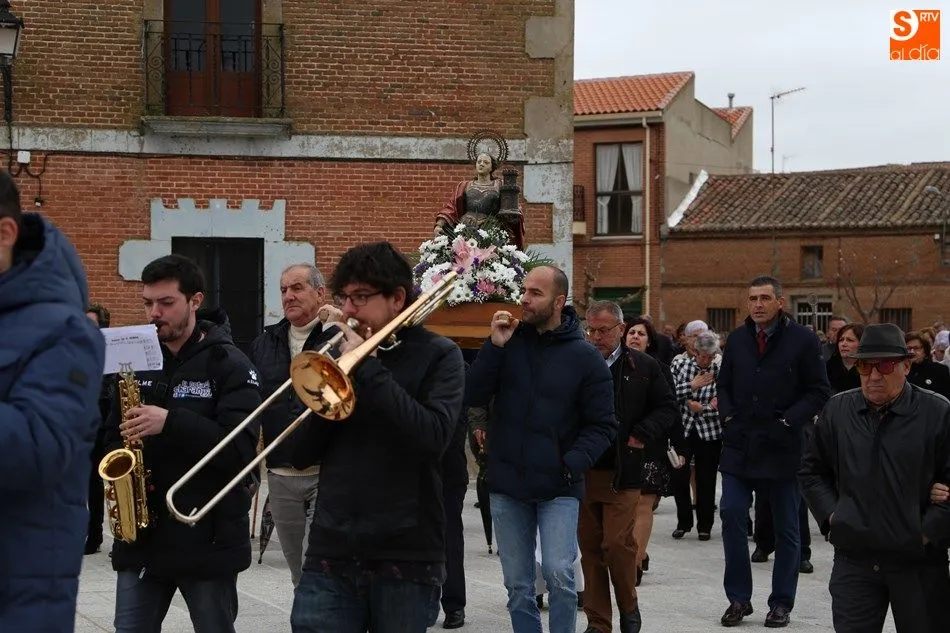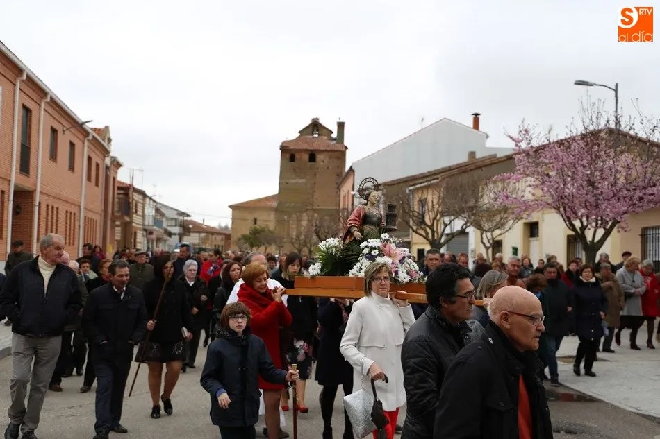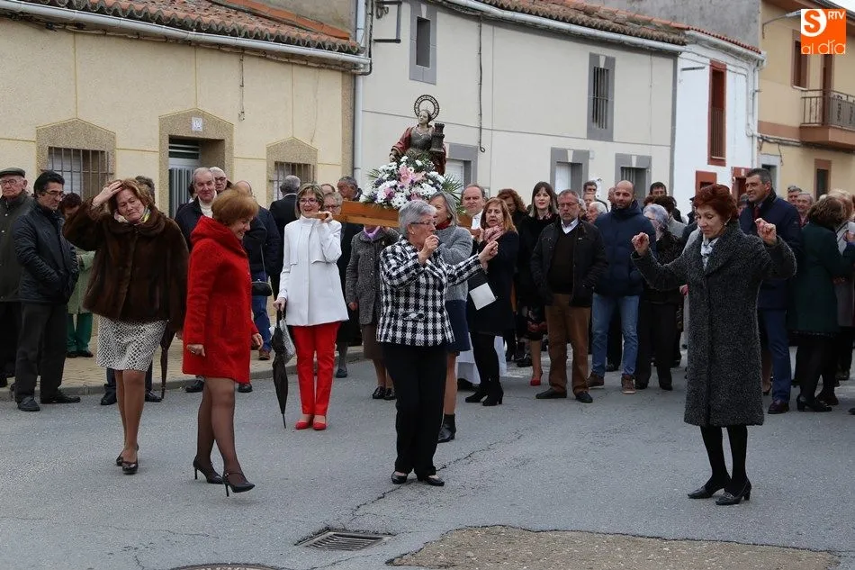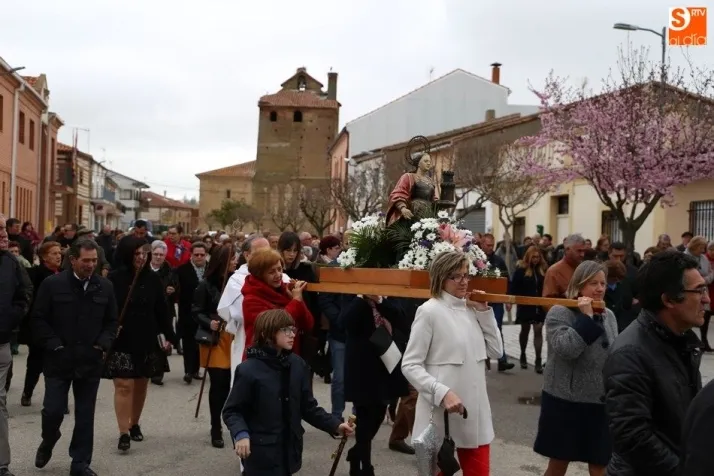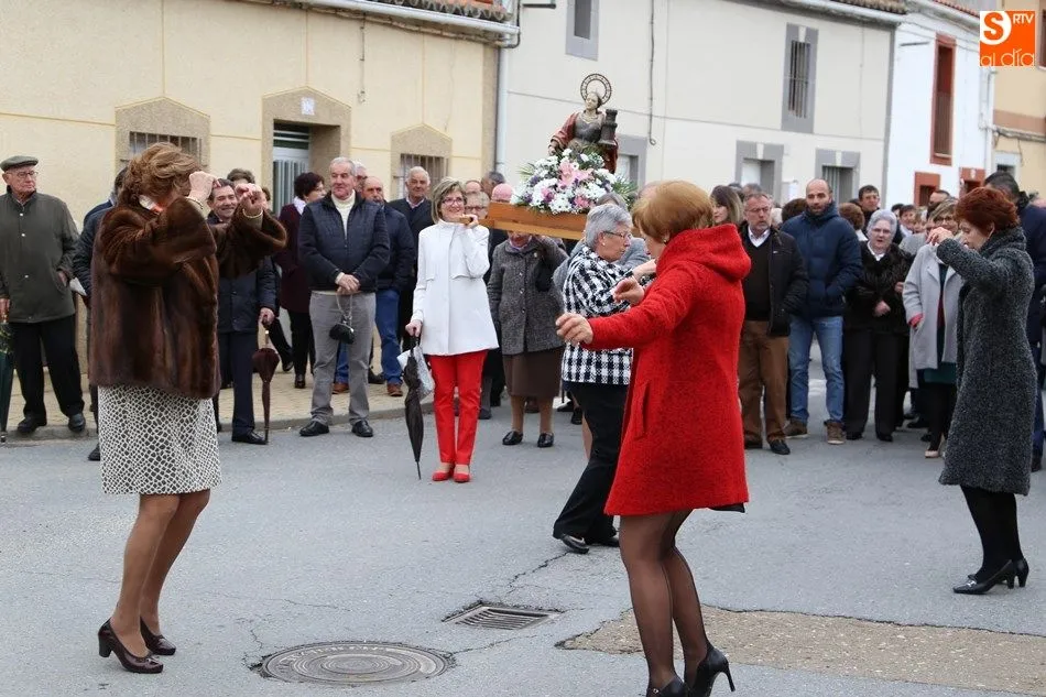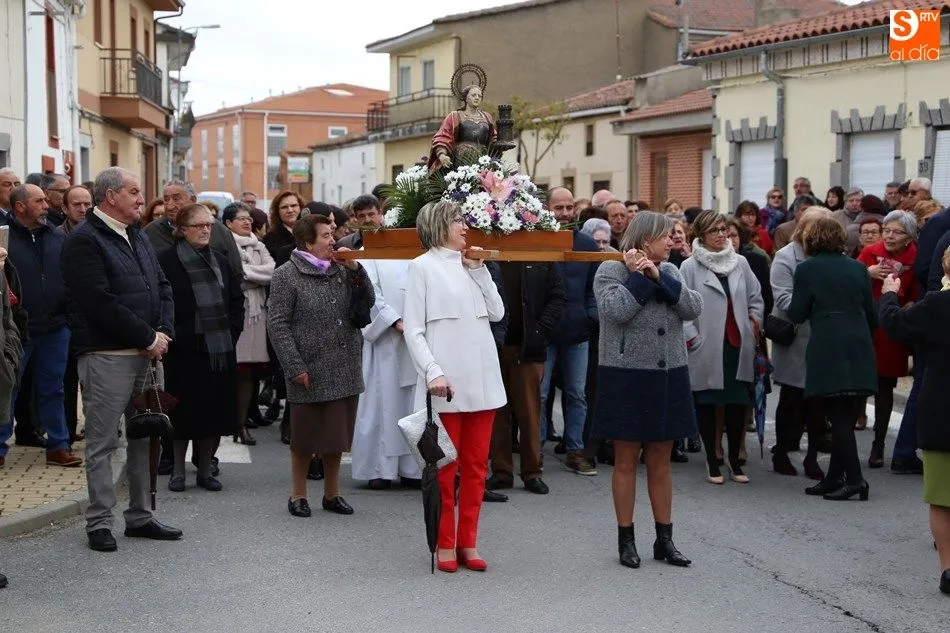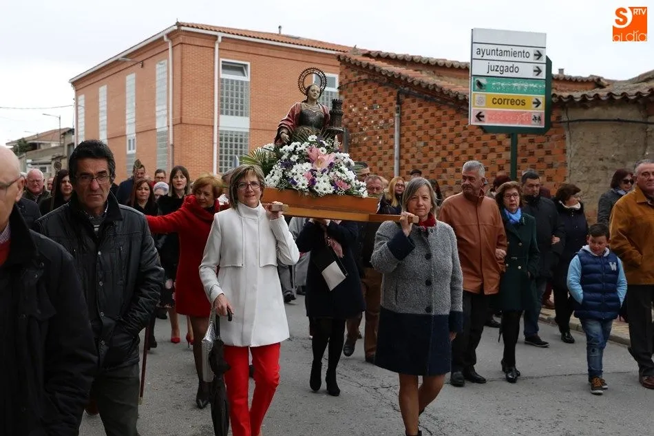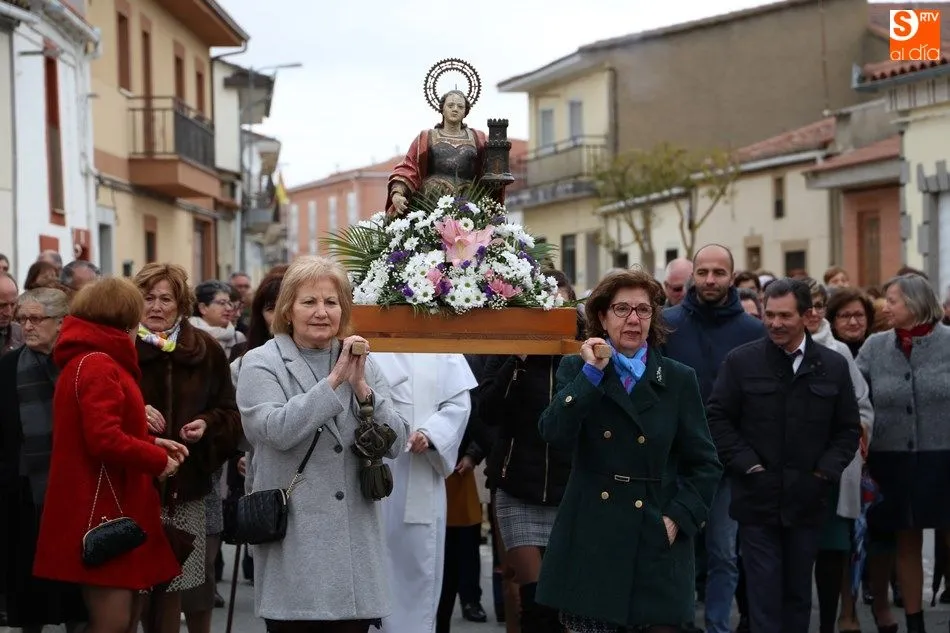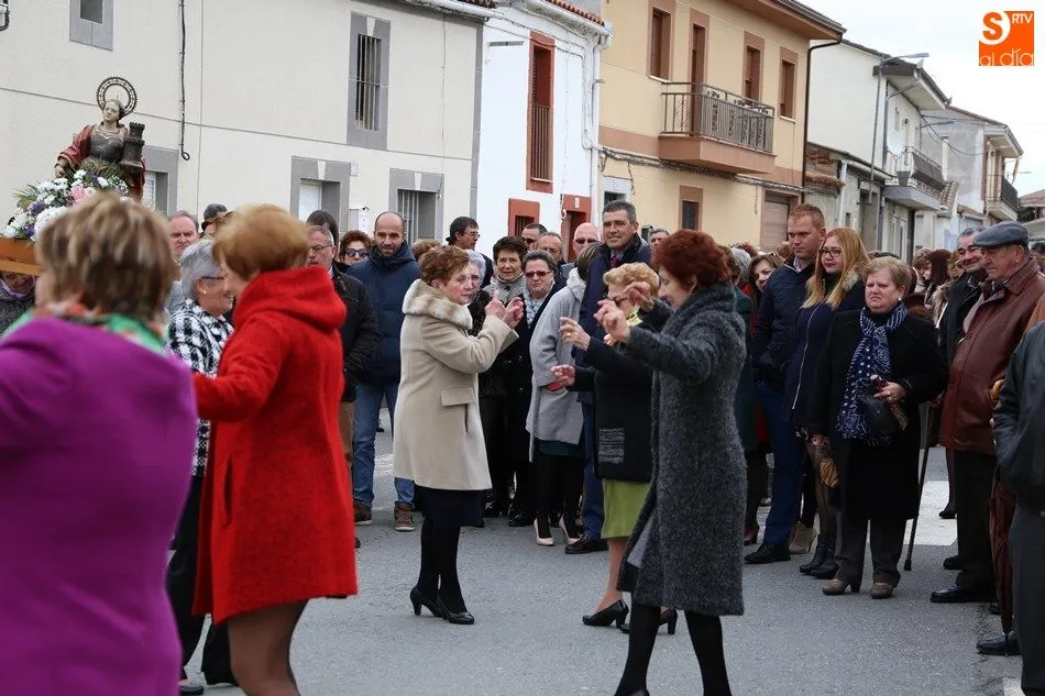 Los vecinos de Villoria honraron este lunes a Santa Bárbara en el día grande de sus fiestas chicas, que vienen celebrándose desde el viernes. La procesión salió de la iglesia tras la celebración de la misa, que estuvo acompañada por el coro Albahaca. En varias ocasiones el séquito se detuvo para quienes quisiesen saliesen a bailar ante la imagen de la santa al ritmo de las jotas tocadas por la charanga.
