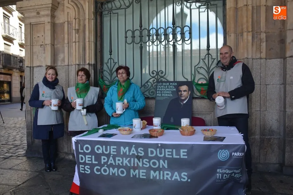 Este miércoles, 11 de abril, se celebra el Día Mundial del Parkinson y la Asociación Parkinson Salamanca ha organizado una jornada de sensibilización con mesas informativas en distintos puntos de la ciudad. Esta actividad se ha distribuido en zonas como la Plaza Mayor, Plaza de la Fuente, Gran Vía, El Corte Inglés, Carrefour, Plaza del Barrio Vidal, entre otros.