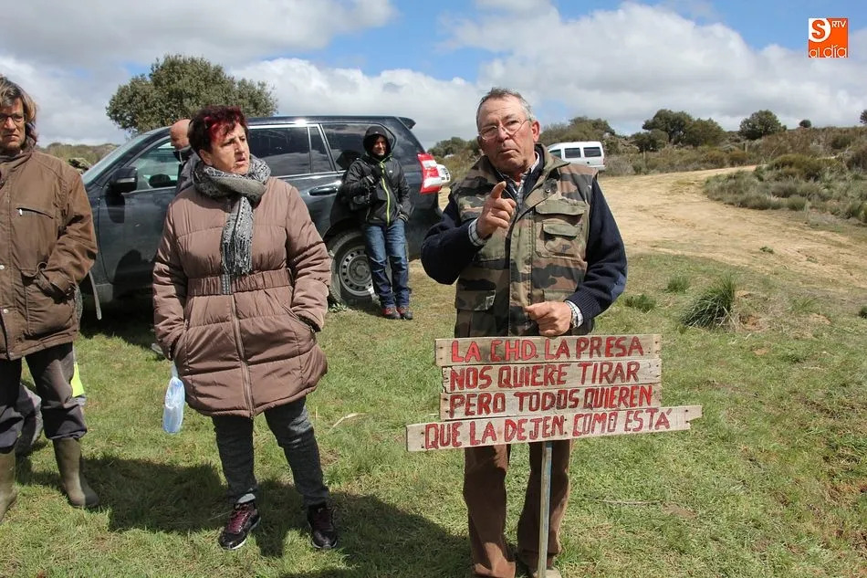 Un grupo de vecinos de Yecla de Yeltes se han concentrado en las inmediaciones de la presa sobre el Huebra para tratar de impedir que la Confederación Hidrográfica del Duero ejecute la demolición de esta infraestructura que un día sirvió para el abastecimiento de agua de este municipio y de Vitigudino, ambos ahora conectados a la red de Cabeza de Horno.