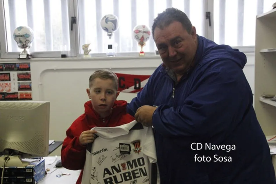 El pasado sábado, el CD Navega contó con una visita muy especial. Se trataba de Rubén, jugador del alevín B, el cual se pasó por el Vicente del Bosque a ver el partido de su equipo.