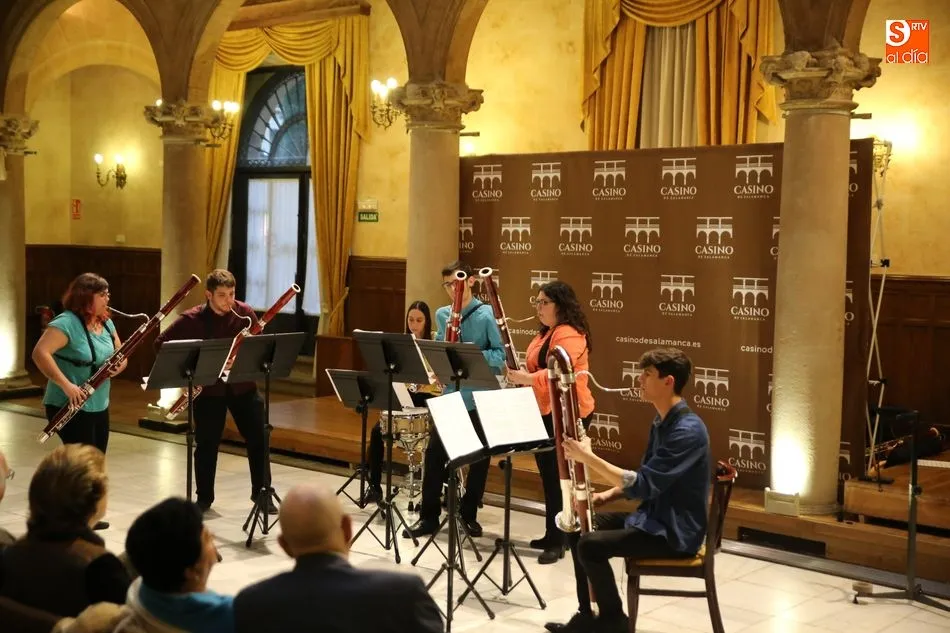Interesantísimo el concierto que esta tarde ofrecían los alumnos del Conservatorio Superior de Música de Salamanca en el Palacio de Figueroa, un acto enmarcado dentro de los Jueves Musicales del Casino de Salamanca, que forman parte de las actividades culturales programadas por el mes de abril por los miembros del Casino, que continúa haciendo una apuesta firme por la cultura con la organización de distintos eventos, pues también hay charlas, proyecciones o conferencias.