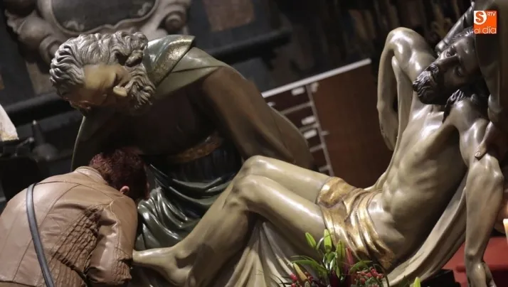 La glesia de San Julián y Santa Basilisa ha acogido el besapiés y una misa solemne -concelebrada por Monseñor Raúl Berzosa, obispo de Ciudad Rodrigo- para finalizar los actos de celebración del 75 aniversario del grupo escultórico del ?Santo Entierro?. Hasta las 20.00 horas de este sábado tiene lugar el besapiés del Cristo esculpido por González Macías delante del altar de la Iglesia de San Julián y Santa Basilisa.