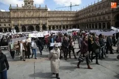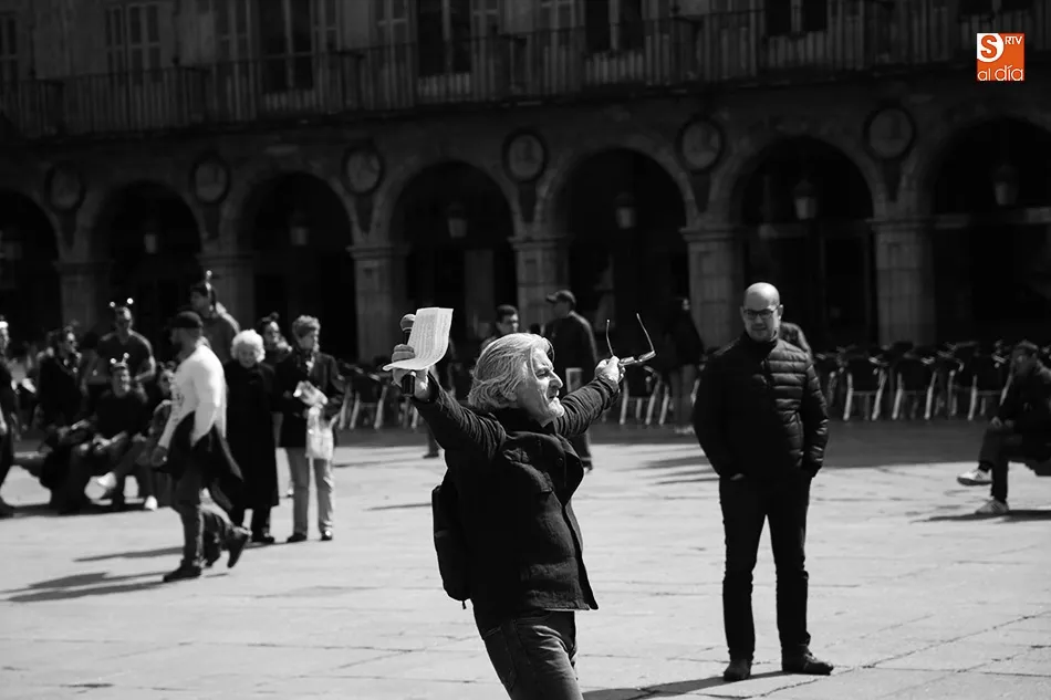Al Día del Ayuno Voluntario y la Operación Bocata, se suma un ?Abrazo solidario? a los 88 arcos del ágora que ha contado con la colaboración de numerosos salmantinos.