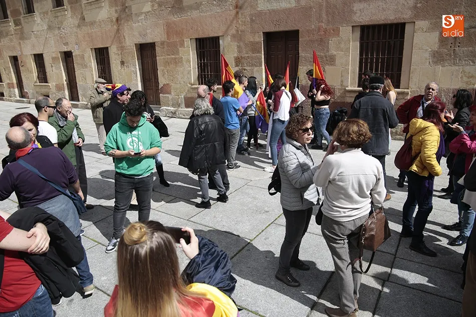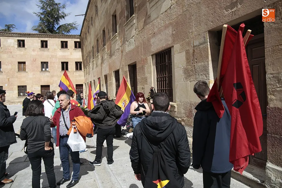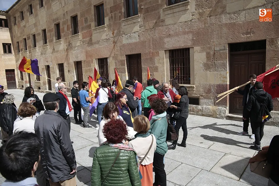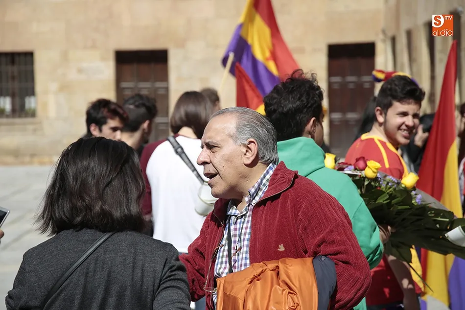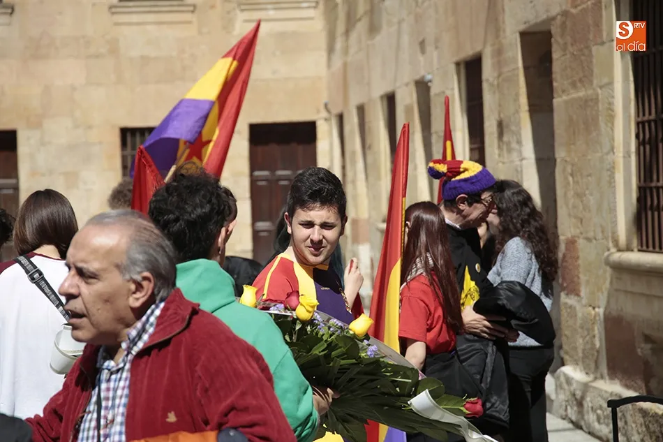 El Colectivo Estudiantil Alternativo (CEA) y el Colectivo Estudiantil Salmantino (CES) han celebrado este sábado el aniversario de la proclamación de la Segunda República, un acto homenaje en recuerdo de los maestros y maestras represaliadas por el franquismo frente a la fachada de la Universidad, un lugar ?simbólico? donde se ha leido un manifiesto y se ha realizado una ofrenda floral en su memoria.