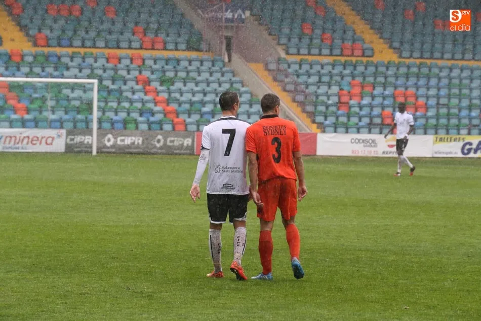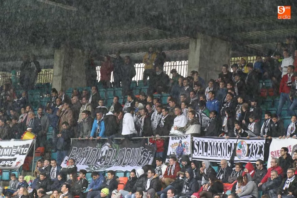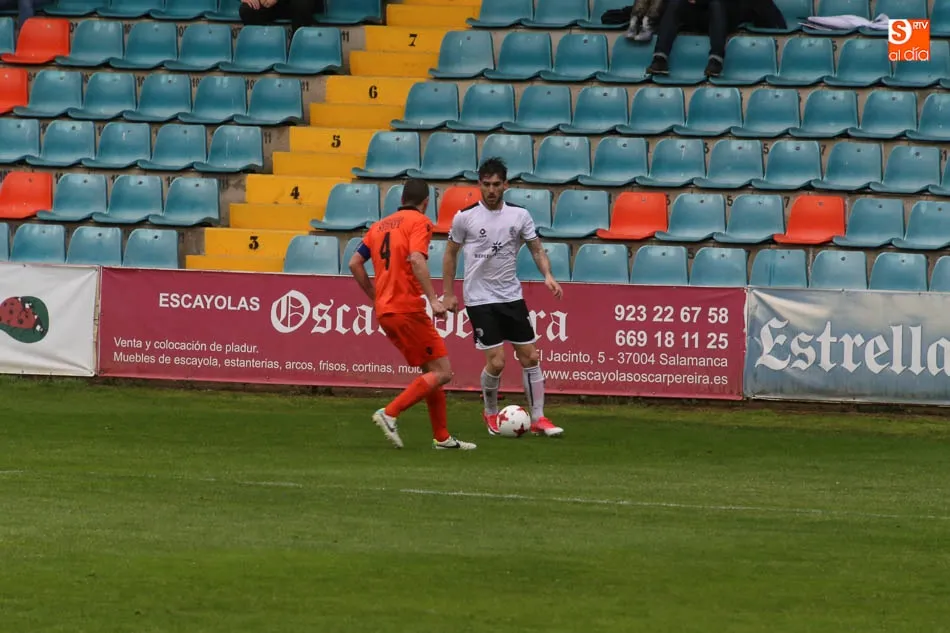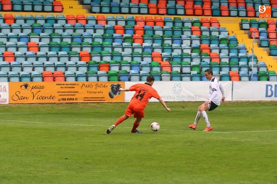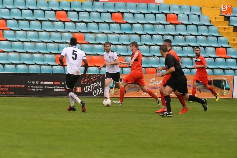Sabedores de la importancia de los tres puntos en juego, los jugadores del CF Salmantino UDS salían a tope desde el principio. Un once que presentaba numerosas caras nuevas ante las numerosas bajas con las que Pablo Cortés afrontaba el encuentro. Y es que a las ya sabidas de Juanan y Marco Iván por sanción, y de Coque y Emilio, por lesión, se unían las de Miguel Ángel, con una fascitis plantar, y a última hora, la de Rodri por una fuerte gripe, lo que obligó al técnico a convocar a los canteranos Chuchi y Héctor Gómez y lo que provocó el debut de Echagüe en la portería. Además, Caramelo volvió a jugar en el lateral derecho, de nuevo con sobresaliente y llevándose una merecida ovación en el cambio. El que no era ovacionado, sino todo lo contrario, era Galván, que volvía al once.