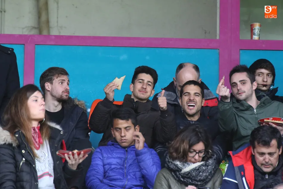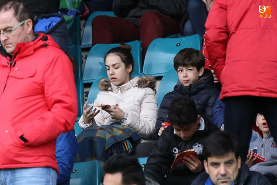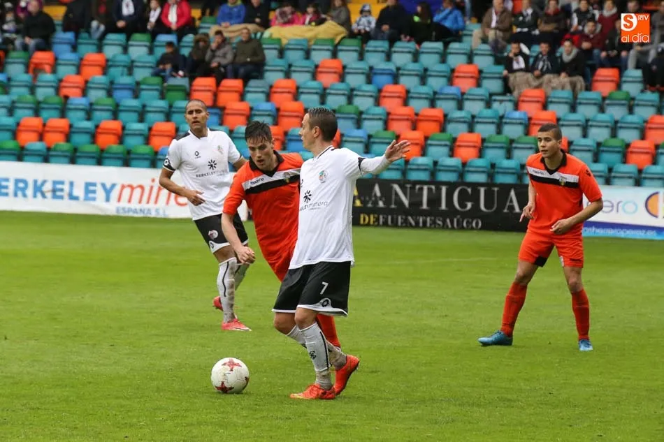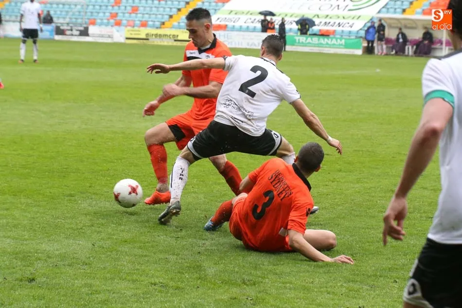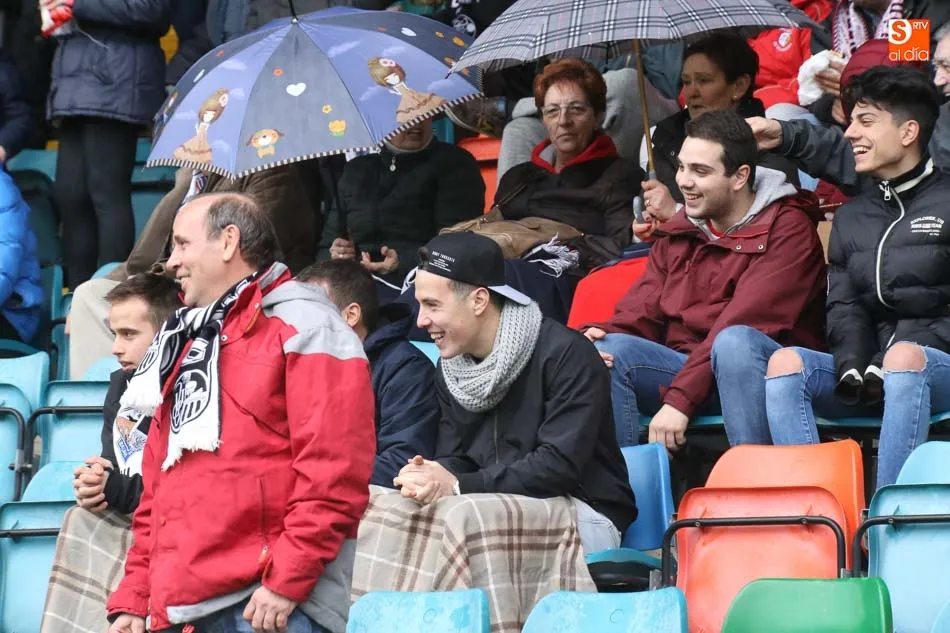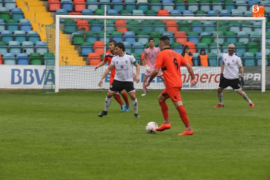 Sabedores de la importancia de los tres puntos en juego, los jugadores del CF Salmantino UDS salían a tope desde el principio. Un once que presentaba numerosas caras nuevas ante las numerosas bajas con las que Pablo Cortés afrontaba el encuentro. Y es que a las ya sabidas de Juanan y Marco Iván por sanción, y de Coque y Emilio, por lesión, se unían las de Miguel Ángel, con una fascitis plantar, y a última hora, la de Rodri por una fuerte gripe, lo que obligó al técnico a convocar a los canteranos Chuchi y Héctor Gómez y lo que provocó el debut de Echagüe en la portería. Además, Caramelo volvió a jugar en el lateral derecho, de nuevo con sobresaliente y llevándose una merecida ovación en el cambio. El que no era ovacionado, sino todo lo contrario, era Galván, que volvía al once.