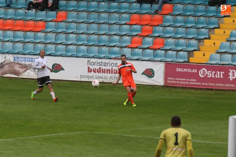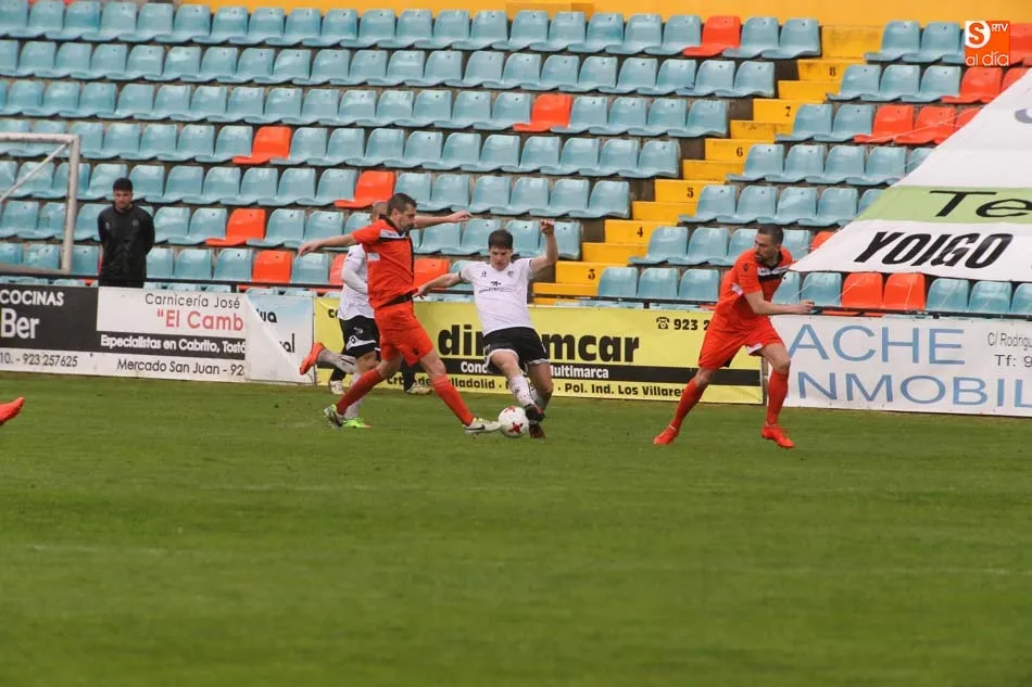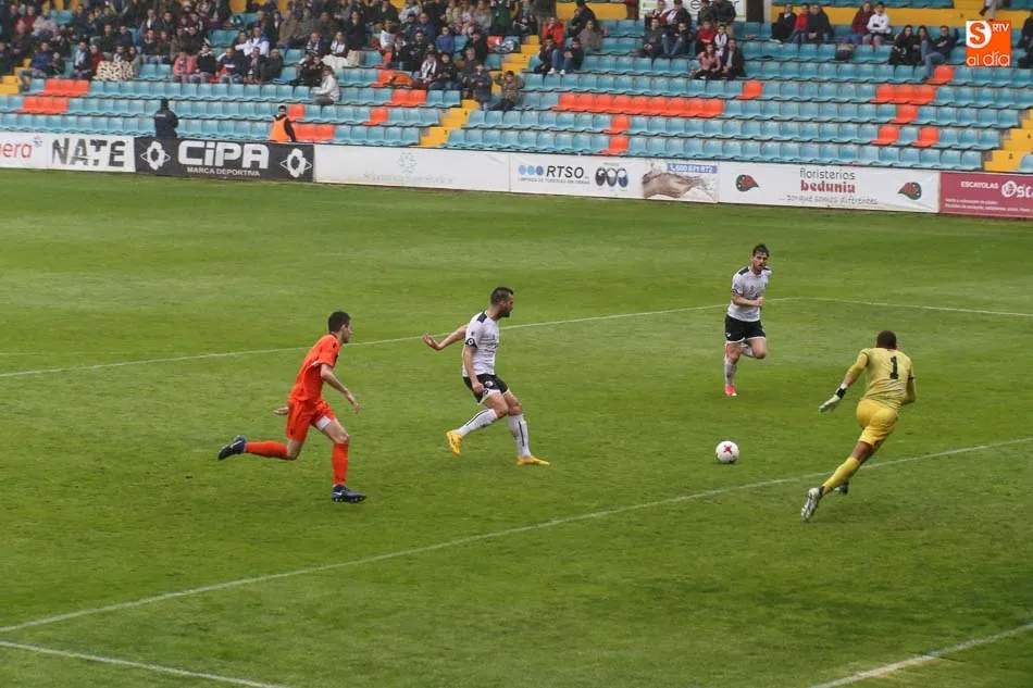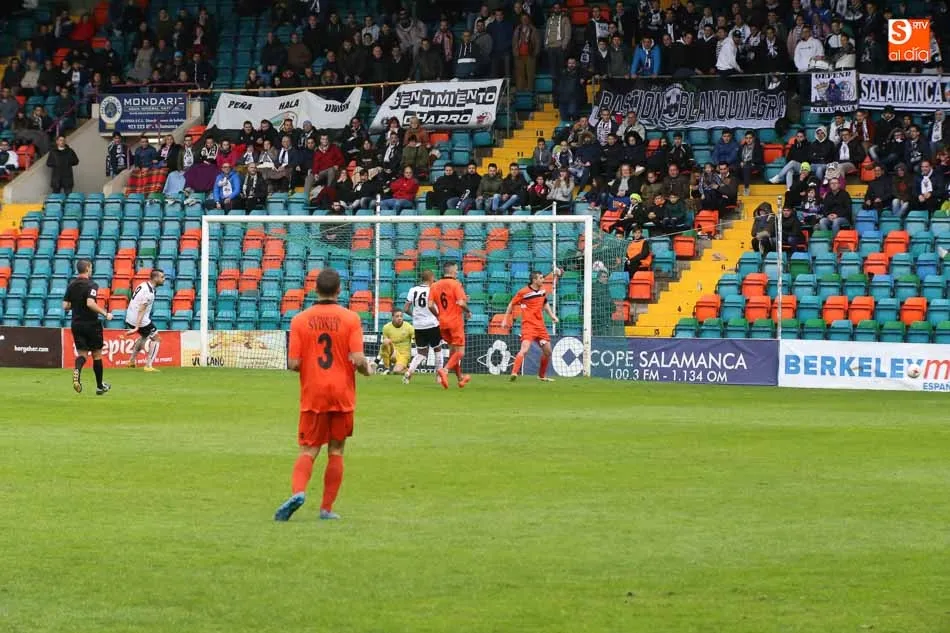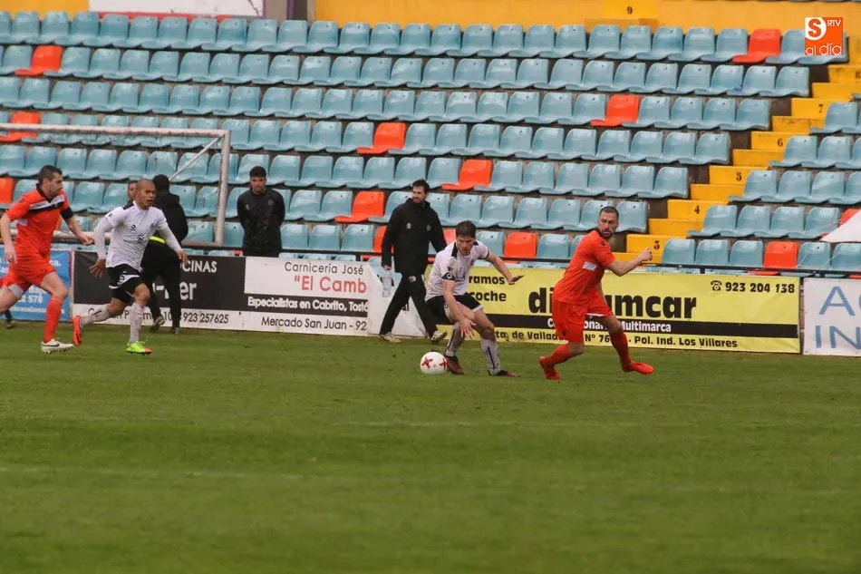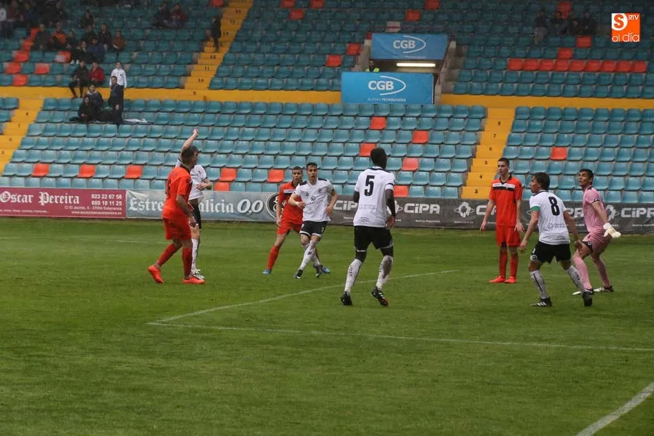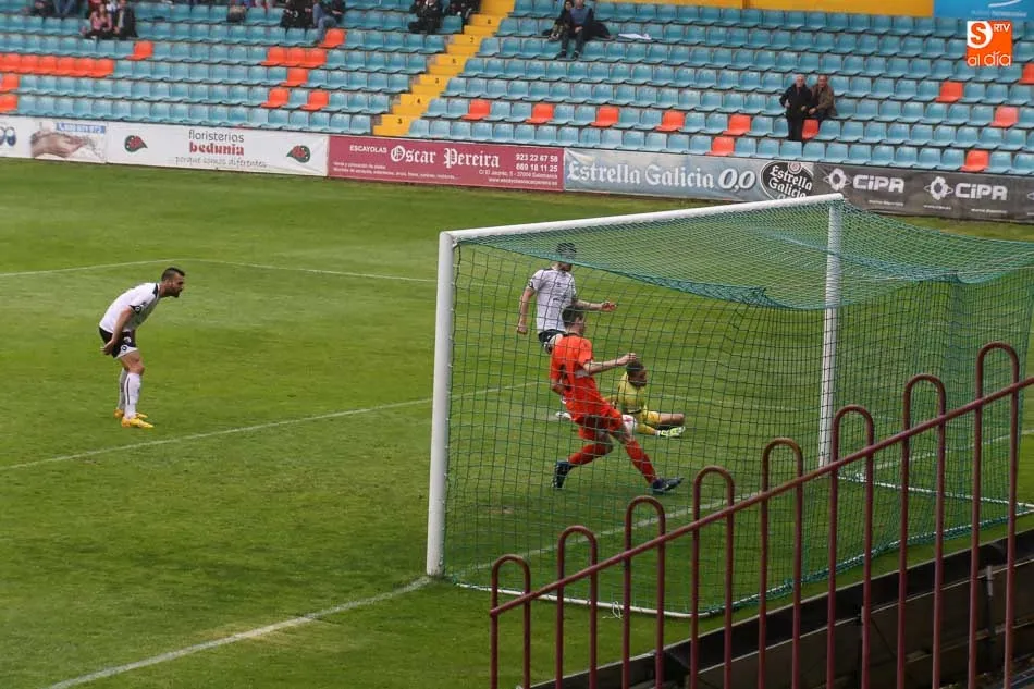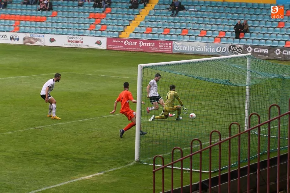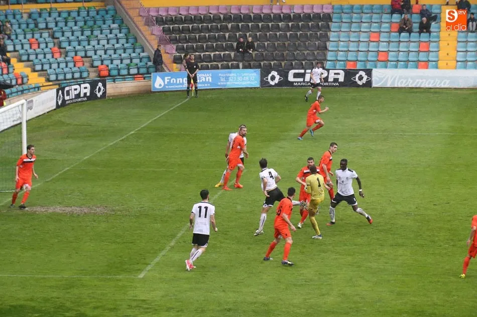 Tras un primer tanteo inicial, Mansour, que regresaba también a la convocatoria y al once, ponía el primero. Había avisado un minuto antes Murci, pero en el 6, el senegalés aprovechaba un balón casi en el área chica para poner el 1-0. El Salmantino UDS dominaba en el marcador y también en el campo y al cuarto de hora, de nuevo Murci estuvo a punto de sentenciar con un remate de cabeza que saca bajo palos Víctor.