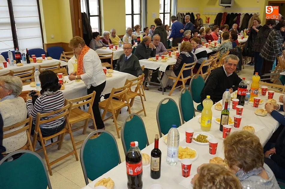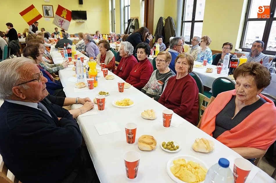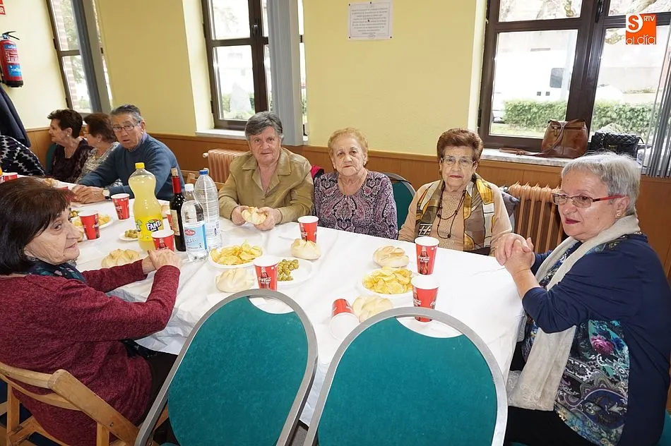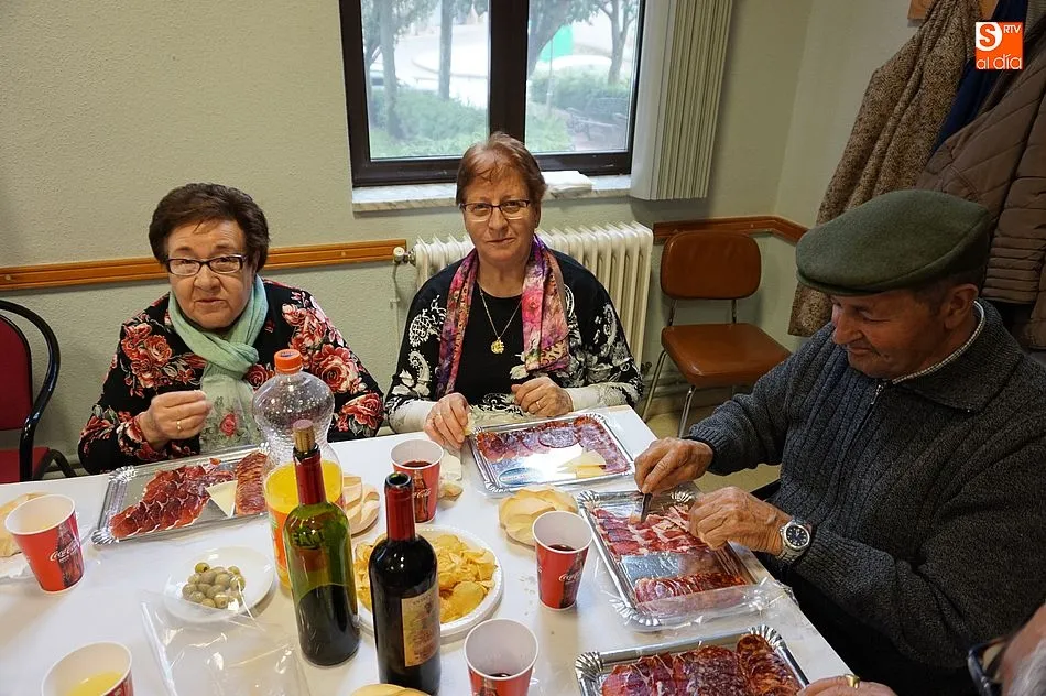 Los mayores disfrutaron de refrescos, aperitivos y una selección de productos ibéricos como merienda, antes de continuar con un baile en el salón con música en directo.