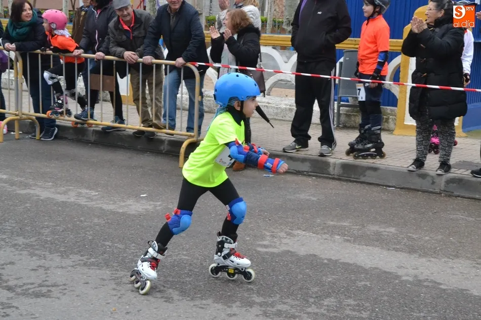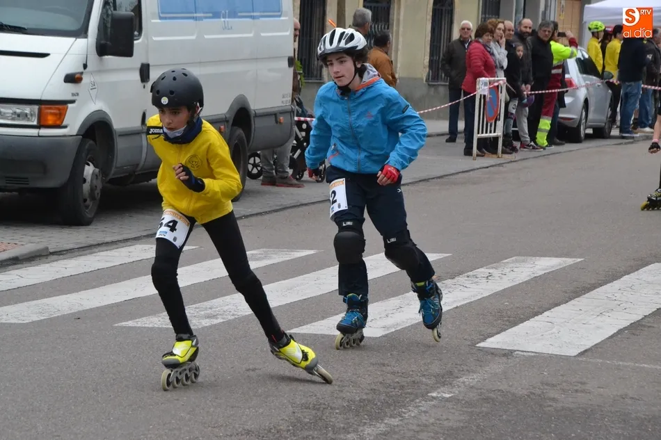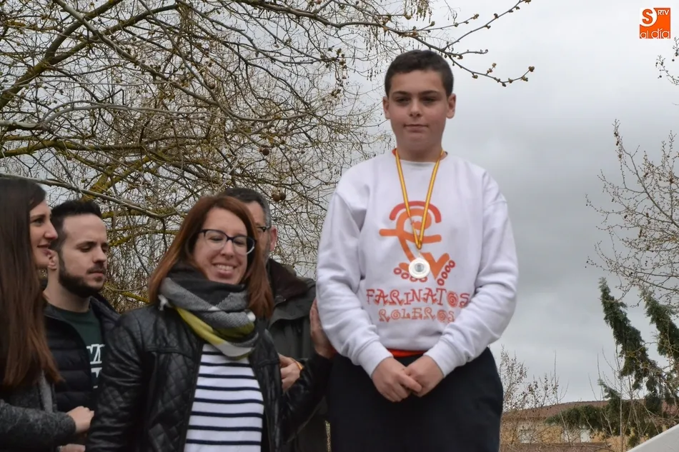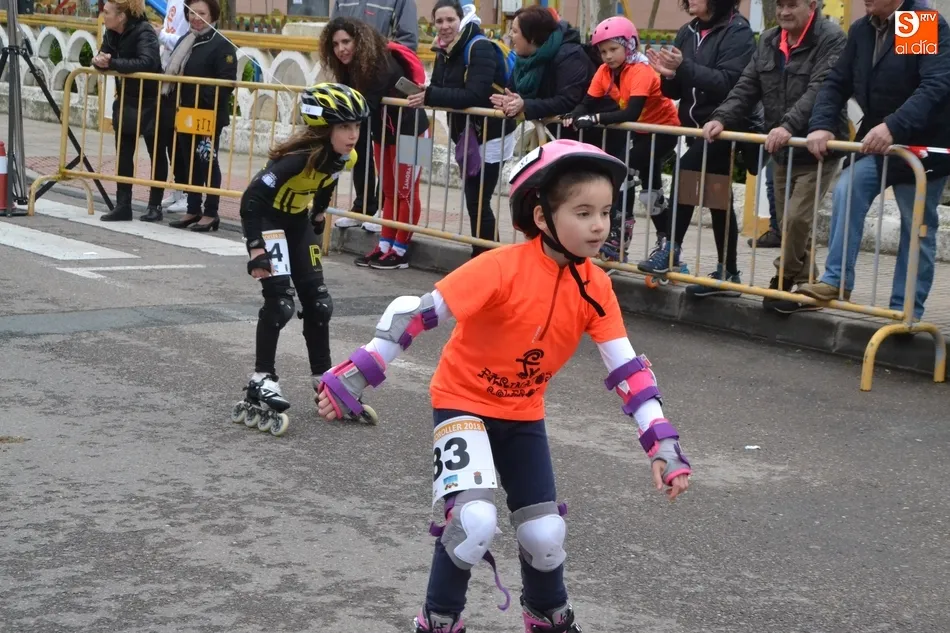 La Farinato Roller escapa de la lluvia en una larga mañana de competición con muchos niños y... | Imagen 2La segunda de las carreras, de 3 kilómetros, estuvo destinada a benjamines y alevines. En lo que se refiere a benjamines, en chicos sólo participó Alejandro Pérez de Burgos Santos, mientras que en chicas conformaron el podio Claudia Jerez Martín, Nuria García Serrano y María Lechón Santos. En alevines, los primeros en chicos fueron Iker Sánchez Sánchez, Pablo Lechón Santos e Iker Blázquez Nieto; y las tres primeras en chicas, Sara Hierro Galán, Julia Gaisan Loncan y Sumei López Pérez. Como el año pasado, en alevines hubo un deportista invidente, Iker Gallego Pérez, que completó la prueba ayudado por un guía.
