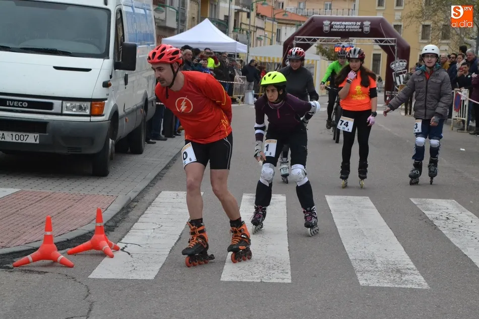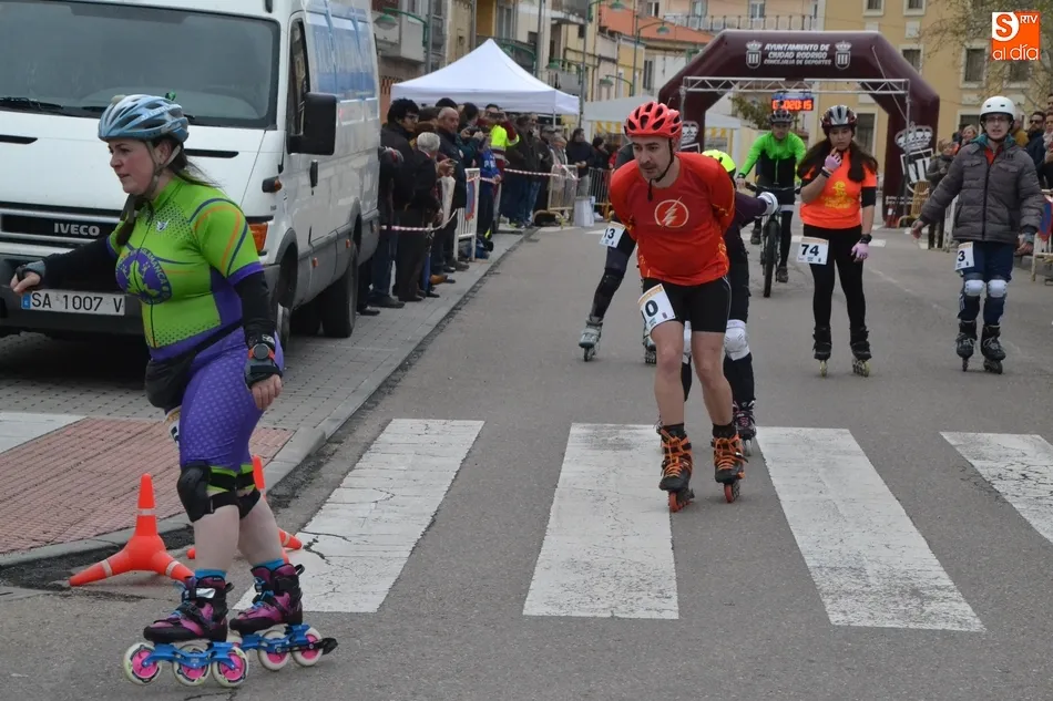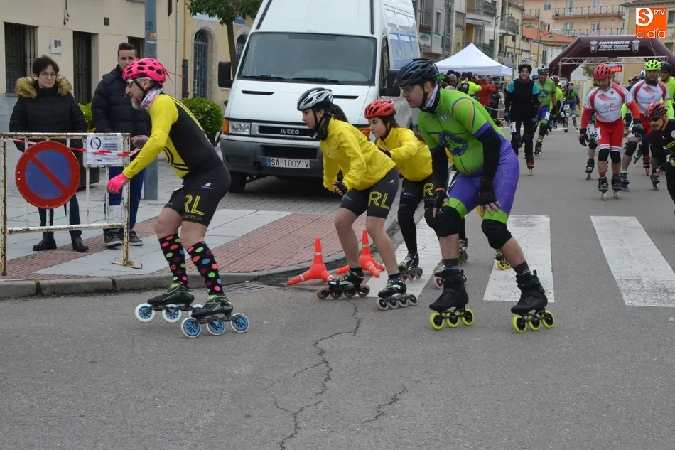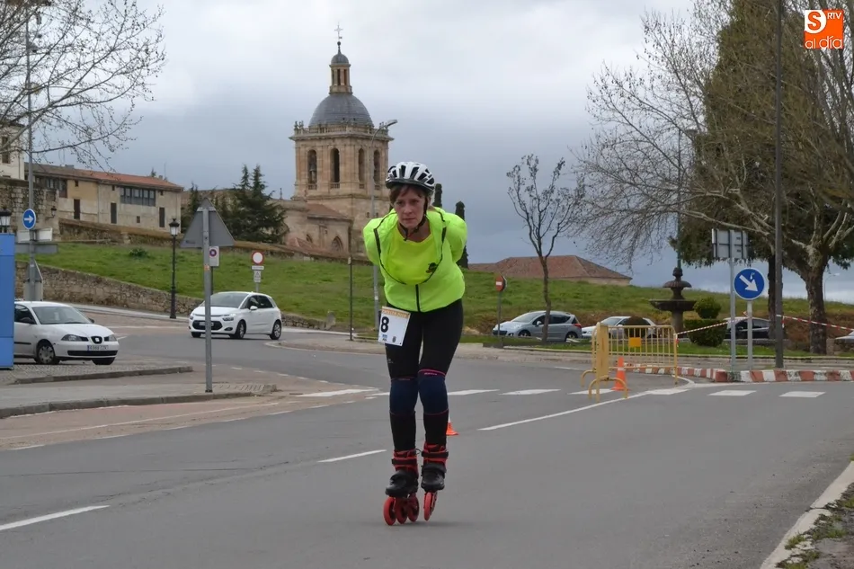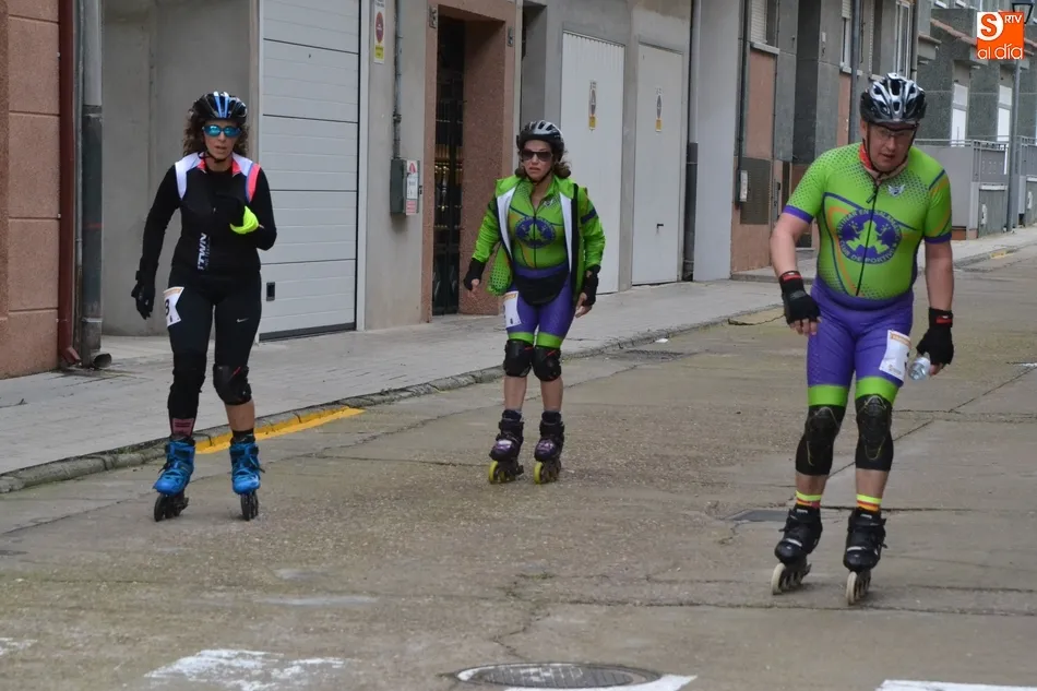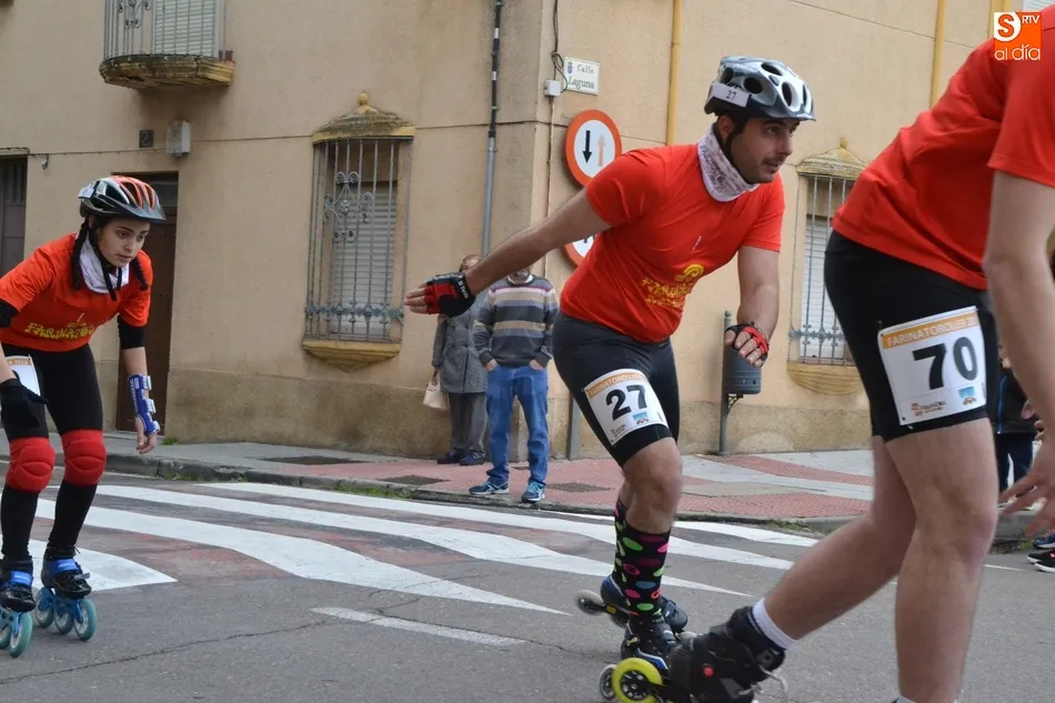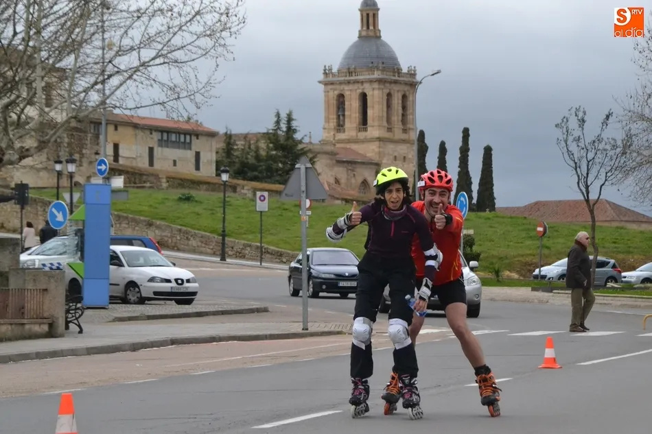 Las calles mirobrigenses vivieron a lo largo de la mañana del domingo la 3ª edición de la Farinato Roller promovida por el Club Farinatos Roleros y la Concejalía de Deportes del Ayuntamiento de Ciudad Rodrigo. A diferencia del año pasado, cuando llovió con intensidad en varios momentos, este año el agua respetó la prueba, aunque de forma milagrosa, ya que el cielo estuvo muy nublado durante toda la mañana (de hecho, hubo un par de momentos en que chispeó durante unos segundos).