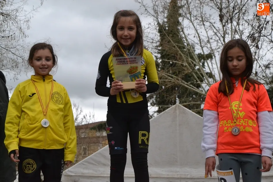 En la primera carrera, hubo dos categorías en liza. En la categoría mini femenino, el podio estuvo integrado por Ana Belén Zamarreño Pérez de Burgos, Vega García Serrano y Mery Pérez Bueno; mientras que en mini masculino subieron al cajón Juan Carlos García Tabernero, Yoel González Serrano y Álvaro Gómez Fulgencio. En la modalidad Prebenjamín femenino, el podio lo integraron Adriana Gaisan Loncan, Lourdes Pontaque Ramírez y Mara Vicente Martín.