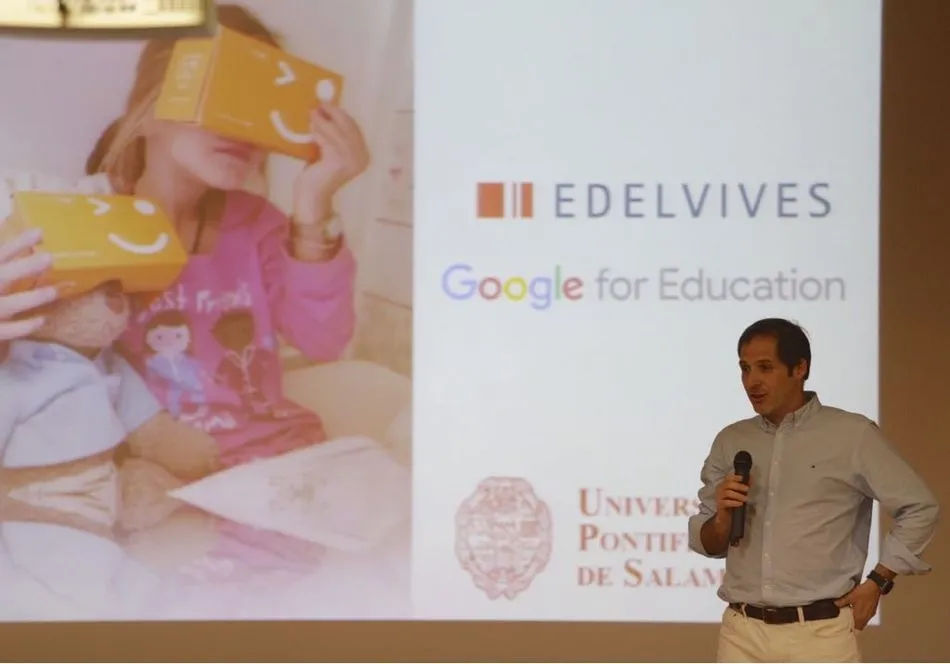 Para finalizar, el director ha presentado los recursos gratuitos para centros educativos que desarrolla Google y en los que colabora Edelvives, como las herramientas de ofimática a nivel educativo como: G Suit, Google Classroom, Expeditions (de realidad virtual), Chromebooks, o Education Programs (que resuelven problemas reales de impacto social).