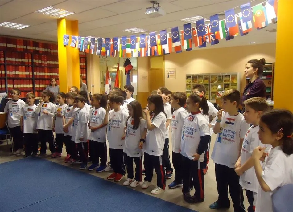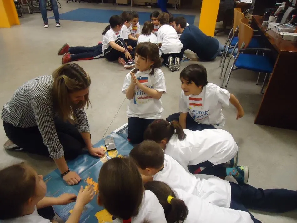 En una actividad organizada por la Fundación Ciudad de Saberes, en colaboración con el Centro Europe Direct Salamanca de la Universidad de Salamanca, los alumnos del colegio Padres Trinitarios, de 2º de Primaria, han visitado este espacio. La iniciativa pretendía sensibilizar a los niños en su condición de ciudadanos europeos y en la diversidad cultural de Europa.