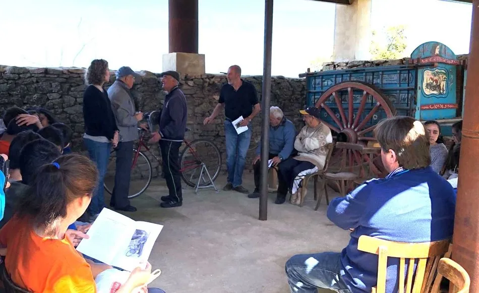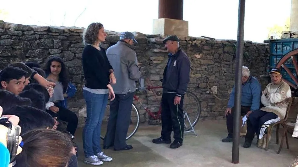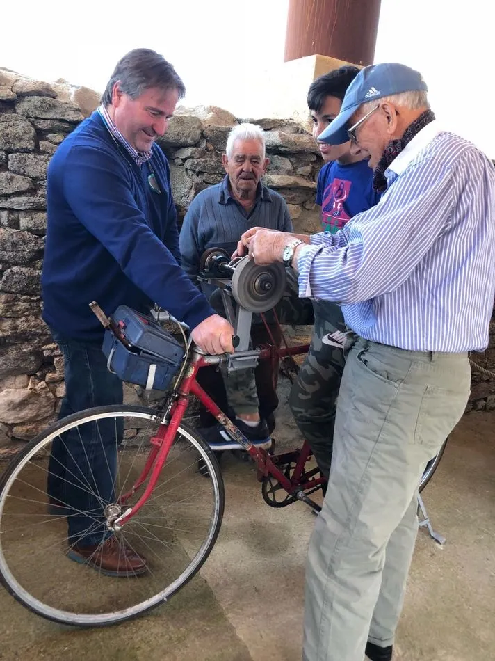 Tanto los alumnos como los vecinos del pueblo escuchaban con atención la interesante vida de Gerardo, que -con el sueño de conocer otros lugares- con 18 años se marchó a Brasil donde comenzó trabajando en una panadería. Más tarde viajaría a Uruguay y a Argentina, y fue aquí donde se interesó por el oficio de afilador, algo que empezó como una manera de ganar un dinero extra y que ha perdurado como su profesión hasta el día de hoy.