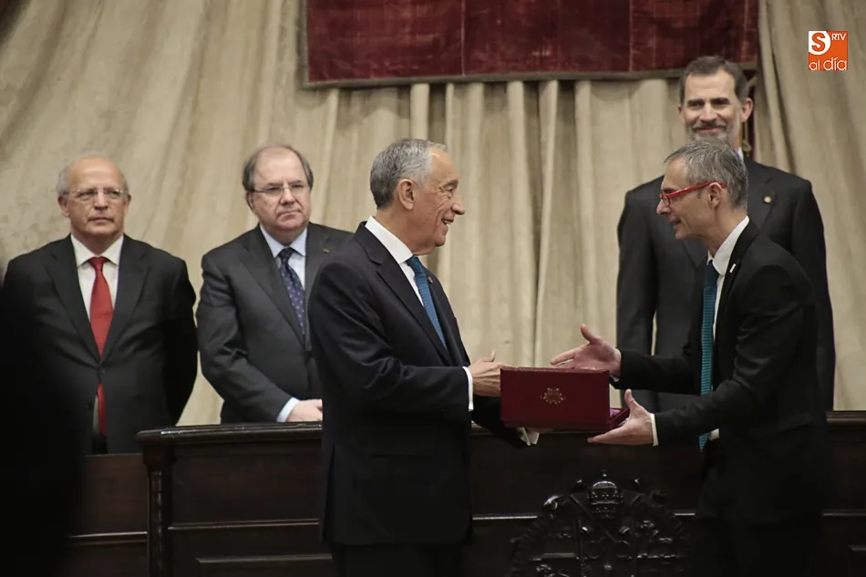 De manos del presidente portugués, Ricardo Rivero recibió el Grado Honorífico de la Orden de Santiago de la Espada con motivo del VIII Centenario de la Universidad. La condecoración, que recae por vez primera en una universidad no portuguesa, premia el mérito literario, científico y artístico de la Casa de Estudios salmantina.