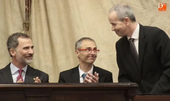 A continuación se proyectaba un vídeo sobre la colaboración académica hispanolusa e intervenía el rector de la Universidad de Coimbra, João Gabriel e Silva, que resaltaba las buenas relaciones con la USAL.