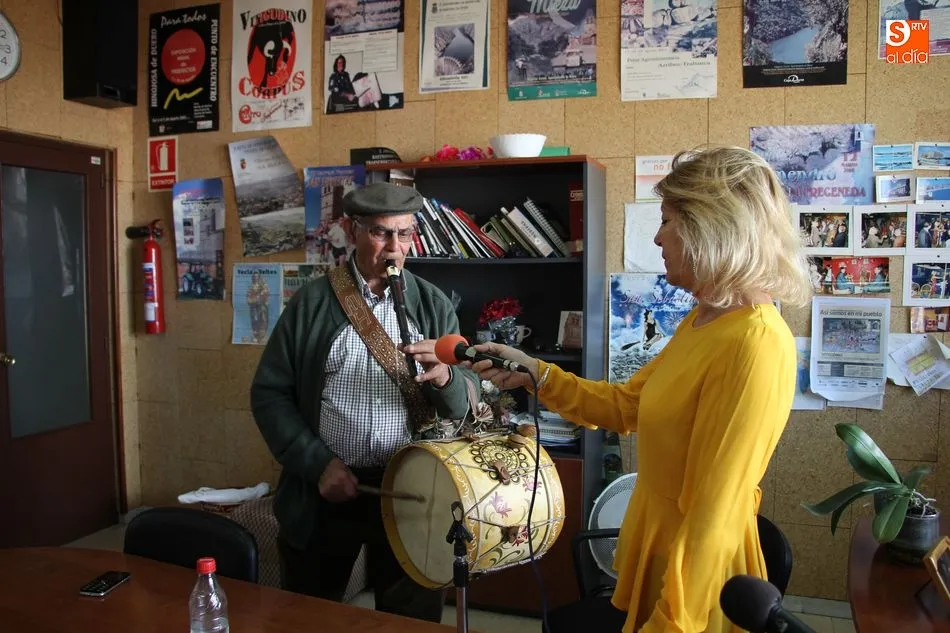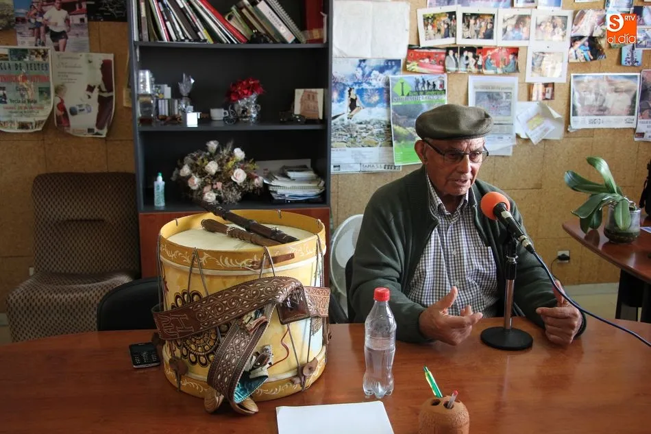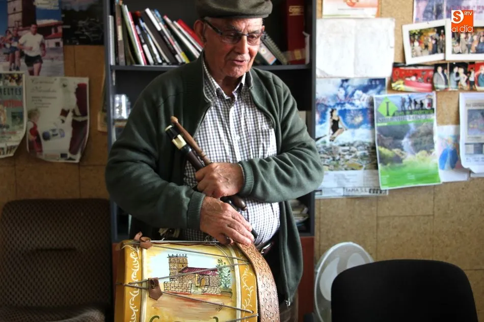 Minutos más tarde llegaba Jorge, representación de una nueva hornada de tamborileros, garantía segura de que este arte no se pierda, y el que, junto con Arcadio ya es muy conocido por toda la comarca, ya que no hay fiesta por estos pueblos que no cuenten con alguno de ellos para acompañar los actos, tanto lúdicos como religiosos.