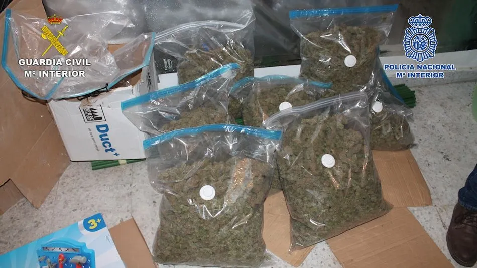 Además se ha localizado una plantación indoor de cannabis sativa con un total de 249 plantas y un peso aproximado de 30 kilogramos y otra con la cosecha ya recolectada y 8044 gramos de cogollos de marihuana preparados para su distribución y 104 gramos de hachís.