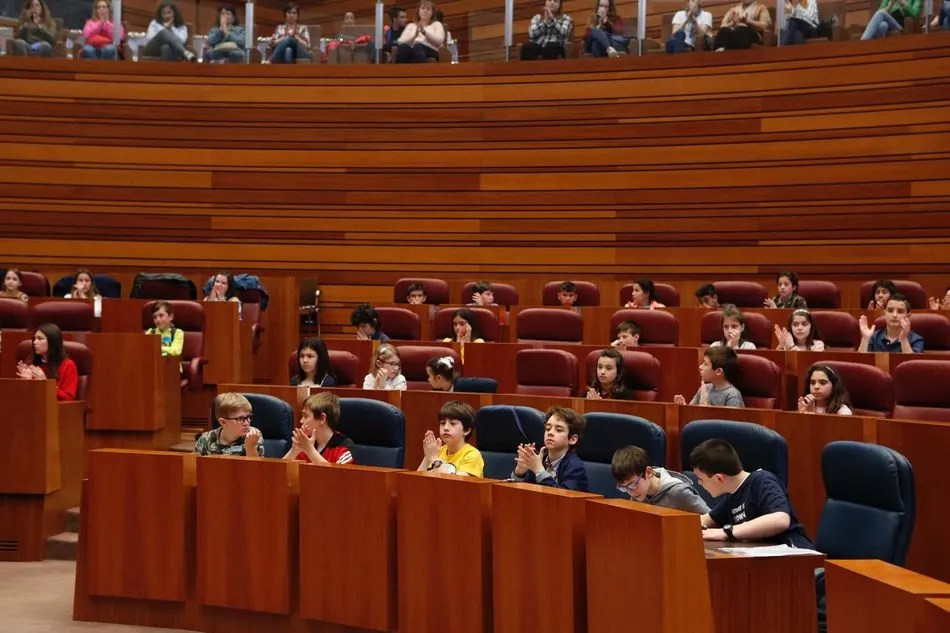 El CRA Campo de Argañán tomó parte en la mañana del viernes en una original sesión plenaria desarrollada en las Cortes de Castilla y León, donde los asientos de los procuradores de los distintos grupos parlamentarios fueron ocupados por un día por 100 escolares de Primaria de 8 colegios de la comunidad (uno de cada provincia excepto de Ávila).