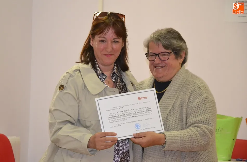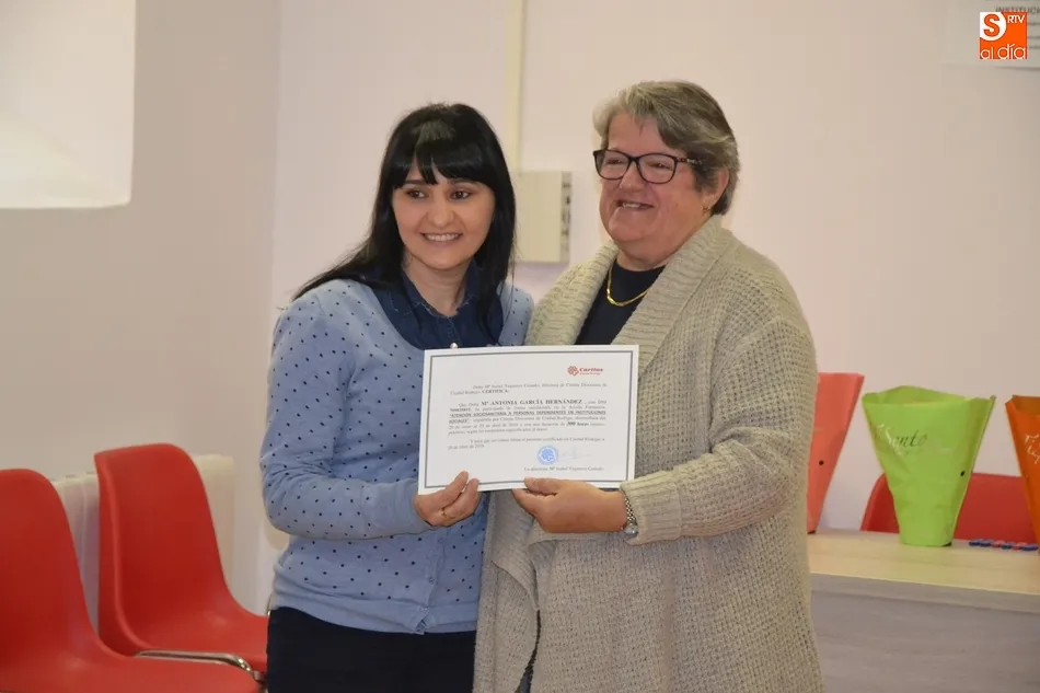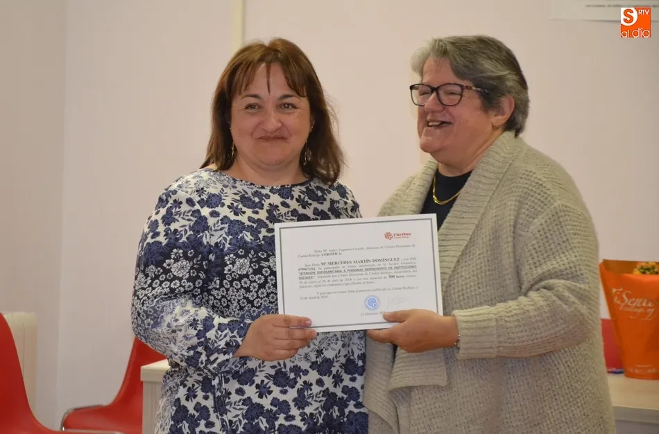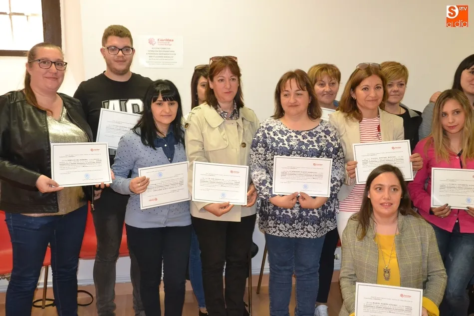 Cáritas Diocesana de Ciudad Rodrigo clausuró en la mañana del viernes una nueva edición de su acción formativa en la atención socio-sanitaria en instituciones sociales, que se ha desarrollado durante casi tres meses (comenzó a finales del mes de enero).En esta acción formativa han tomado parte un total de 12 personas (11 mujeres y 1 hombre), llegando todos ellos a buen puerto tras 300 horas de formación.