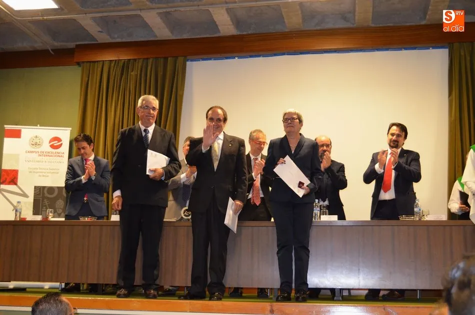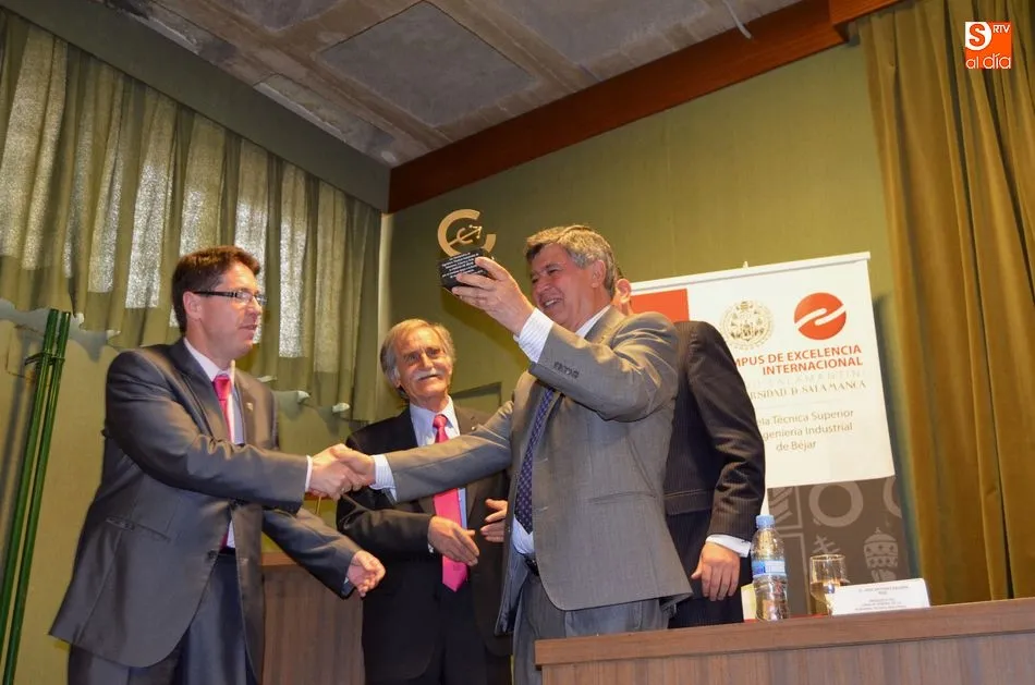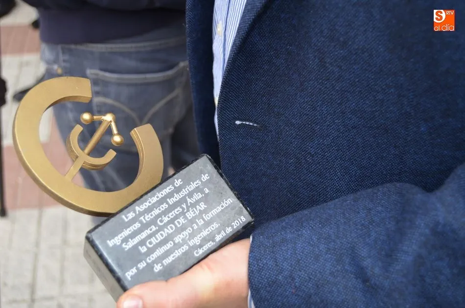 Este año, el acto académico de imposición de insignias ha ido acompañado de la inauguración de una escultura donada por las asociaciones de ingenieros técnicos industriales de Ávila, Cáceres y Salamanca, en agradecimiento a la acogida que tienen los estudiantes que residen en Béjar para cursar sus estudios, en la que es la segunda escuela ingeniería más antigua de España.