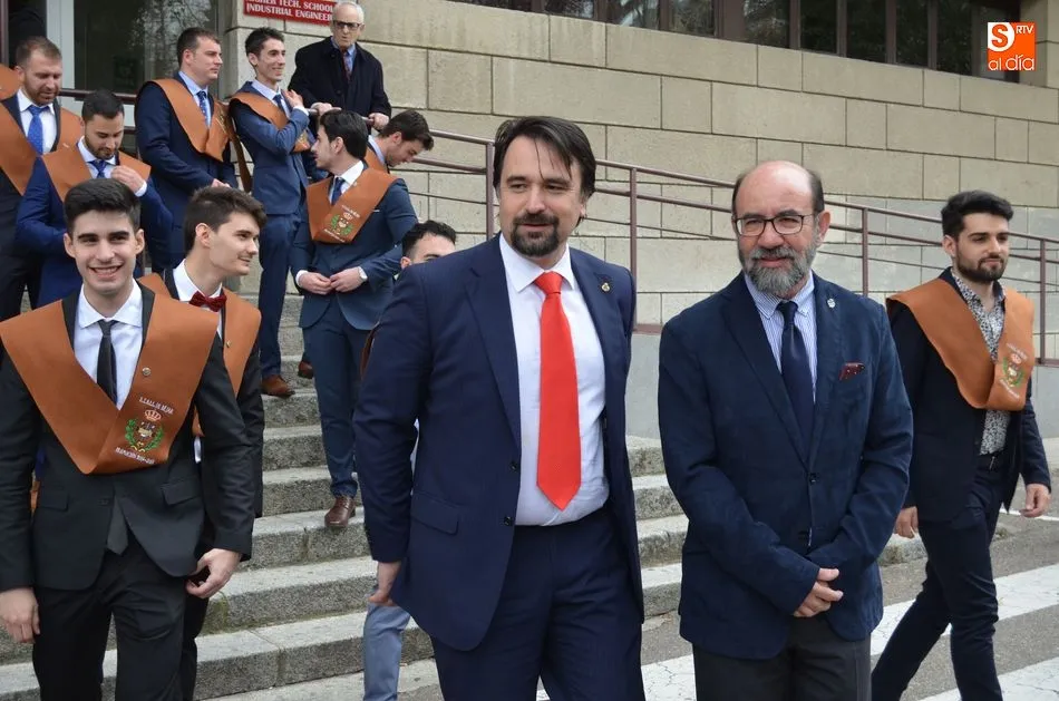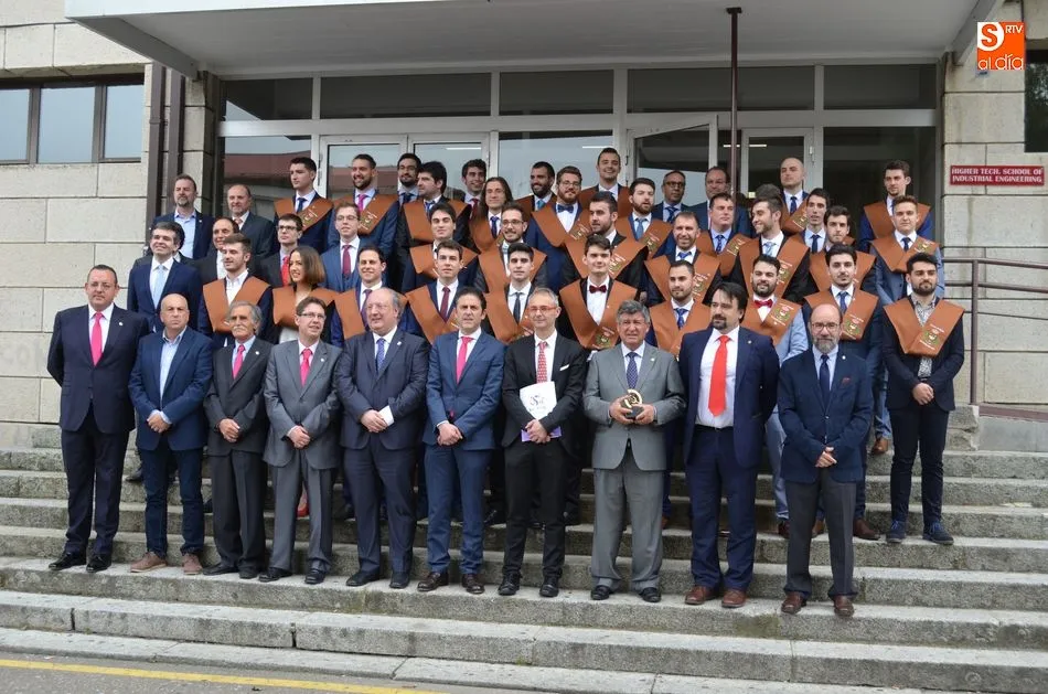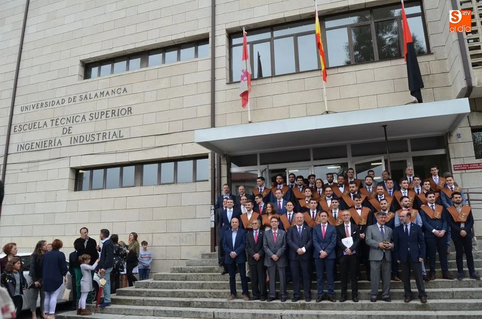 Hoy se ha celebrado el acto de imposición de insignias a la promoción de Ingenieros 2018 que se gradúa en la Escuela Superior de Ingeniería Industrial de Béjar. En esta ocasión el evento ha contado con la presencia del rector de la Universidad de Salamanca, Ricardo Rivero, que ha venido acompañado de Enrique Cabero, vicerrector de Promoción y Coordinación y responsable de la oficina de 8º Centenario.