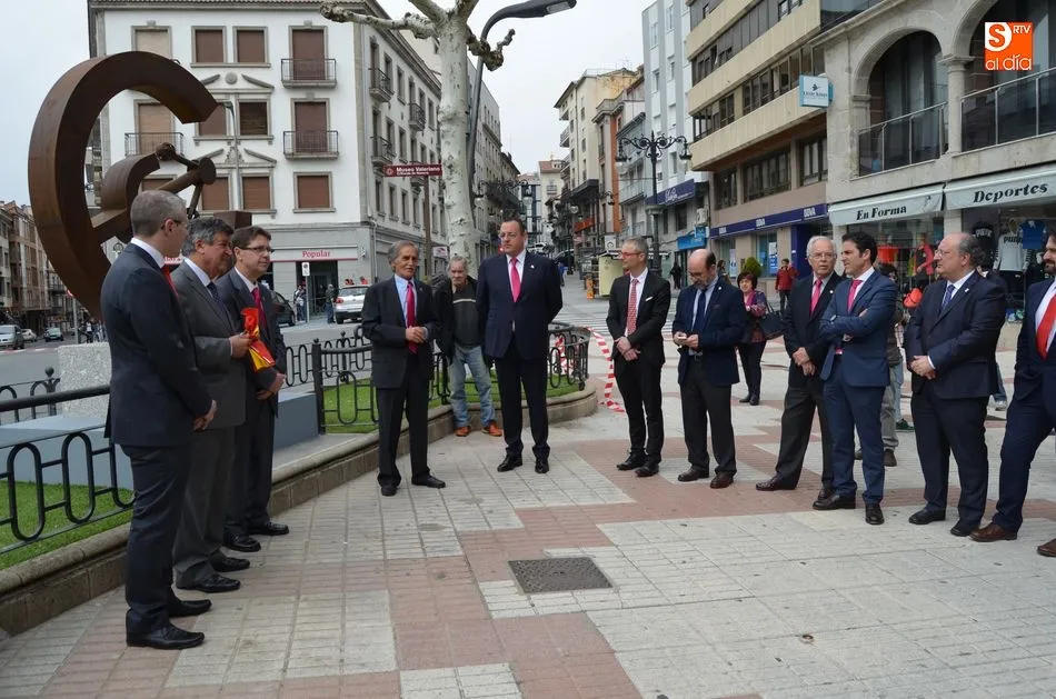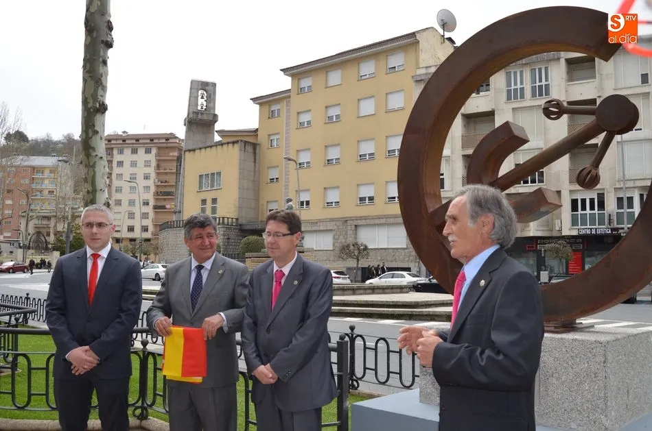 BÉJAR | La imposición de insignias a los graduados de la Escuela Superior de Ingeniería ha venido acompañada de la inauguración de una escultura en La Corredera donada a la ciudad por las asociaciones de ingenieros técnicos industriales de Cáceres,