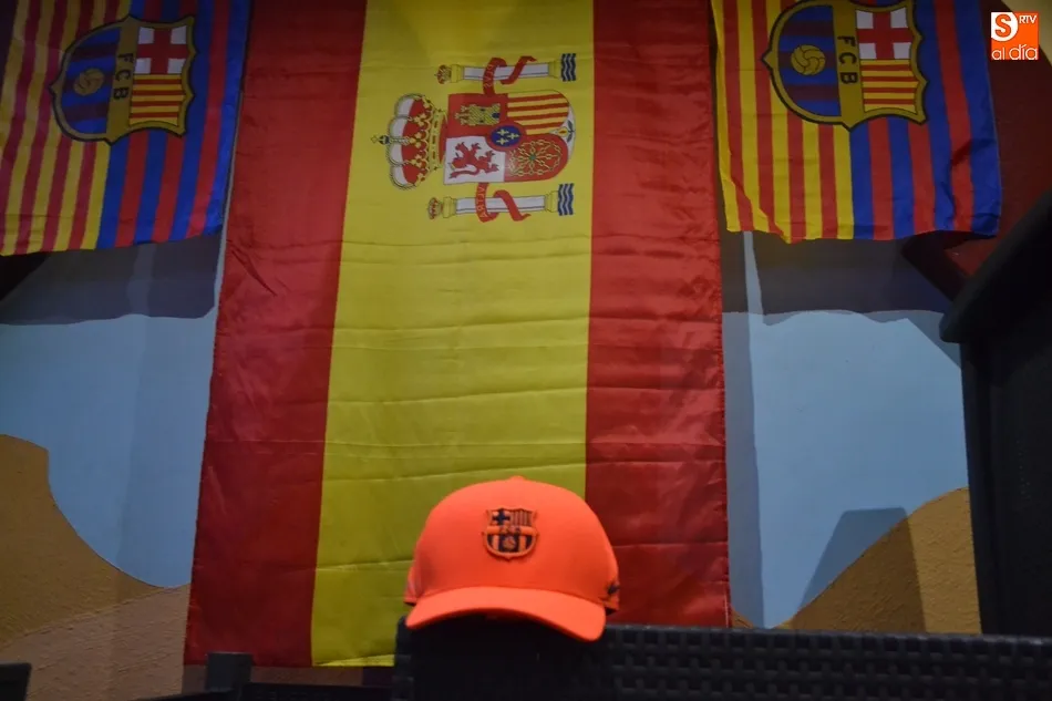 Los que estuvieron en el Bar quisieron aprovechar la celebración del título copero, como se puede ver en las imágenes, para hacer una reivindicación de la españolidad del FC Barcelona.
