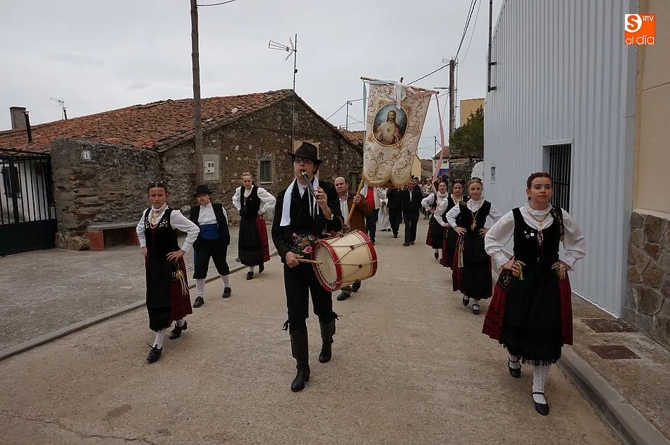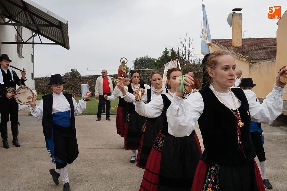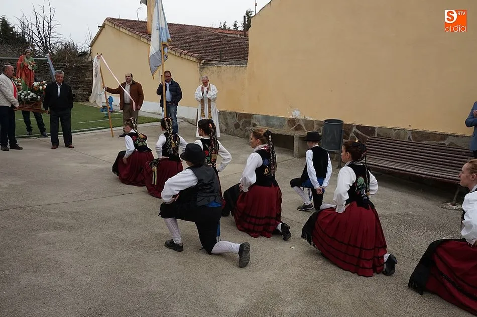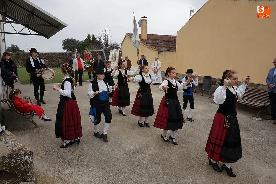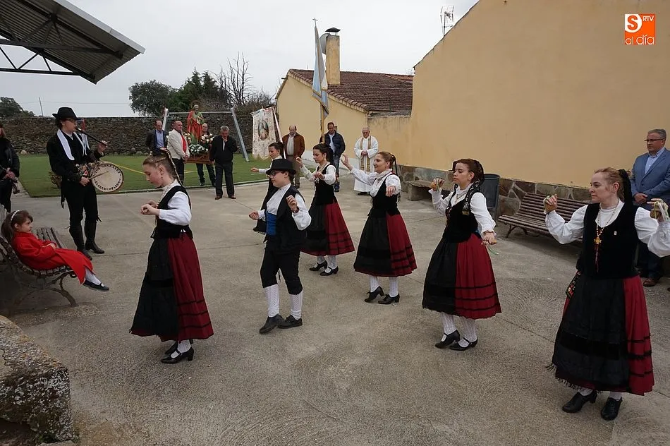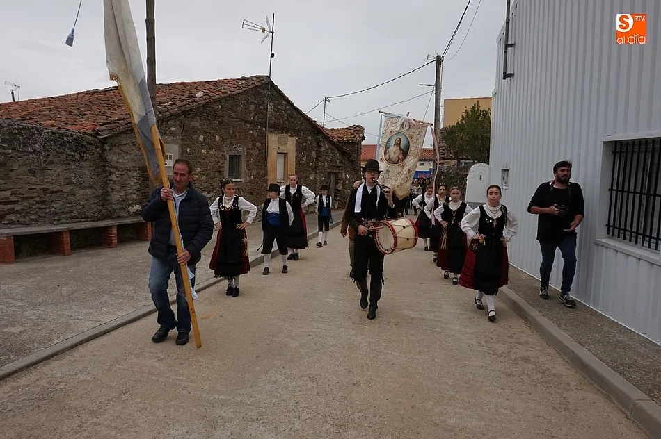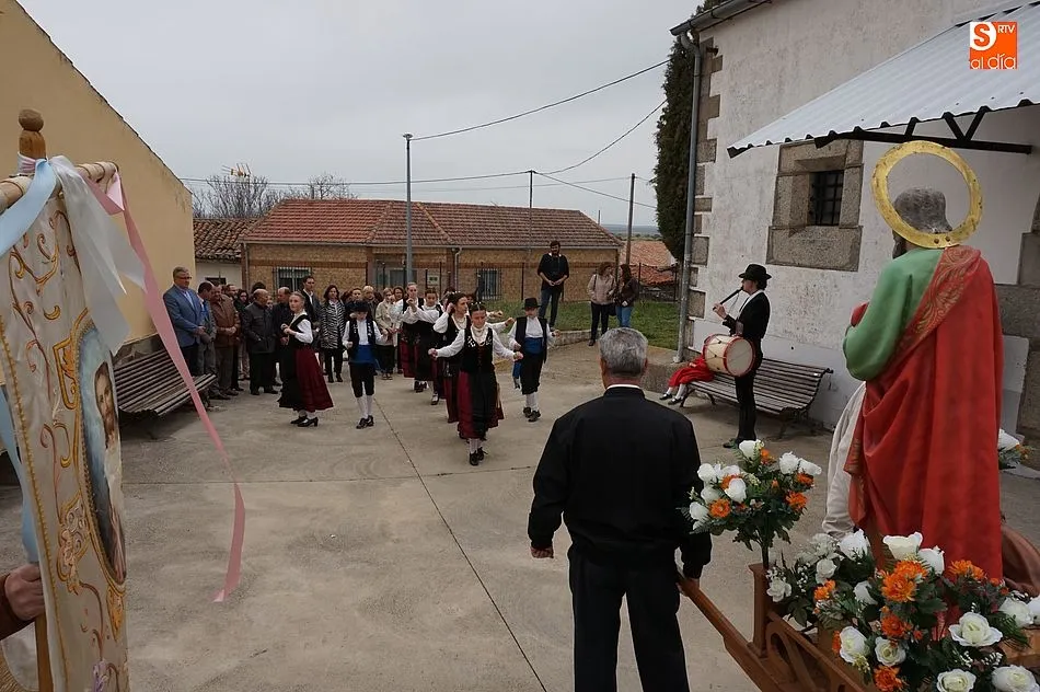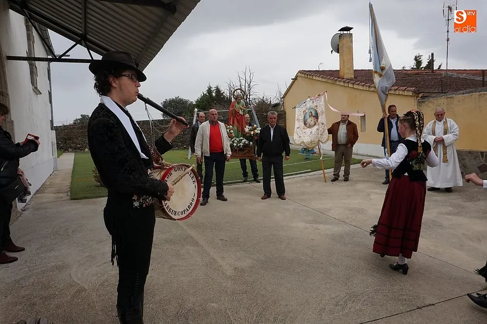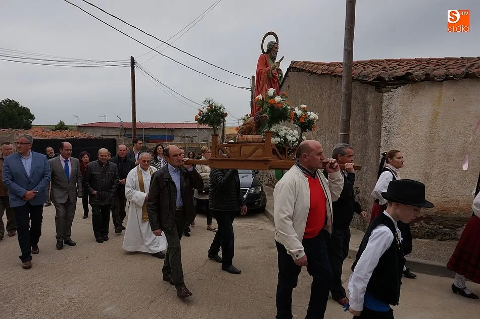 Cabezuela de Salvatierra se sumerge hoy en el día grande de sus festejos con los actos de homenaje a San marcos. Los vecinos se han dado cita en la parroquia local para asistir a la misa y posterior procesión con la imagen del patrón por las calles de la localidad. Al igual que en años anteriores, el Grupo Folclórico El Torreón de Guijuelo ha acompañado a la comitiva y ha ofrecido varios bailes al son de la música del tamborilero Víctor González.