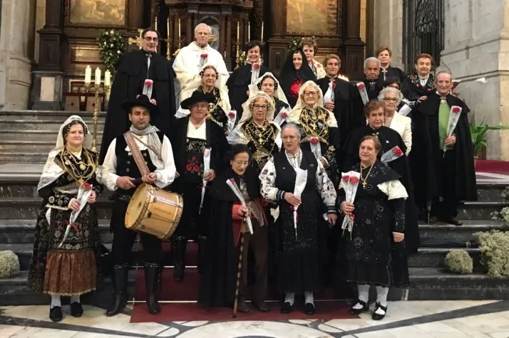 Como manda la tradición, los participantes en la comitiva ?entre los que hubo varios miembros de la Corporación Municipal encabezados por el alcalde Juan Tomás Muñoz- depositaron flores a los pies del monumento donde está el busto. A continuación, llegaron unos minutos más lúdicos, con tiempo para el baile y para la degustación de vino y dulces repartidos de forma gratuita por la Asociación. Estos actos callejeros se desarrollaron con normalidad, ya que el cielo estuvo tranquilo durante esos minutos.