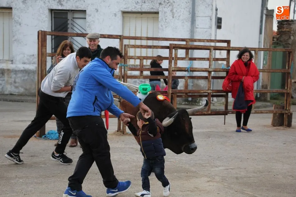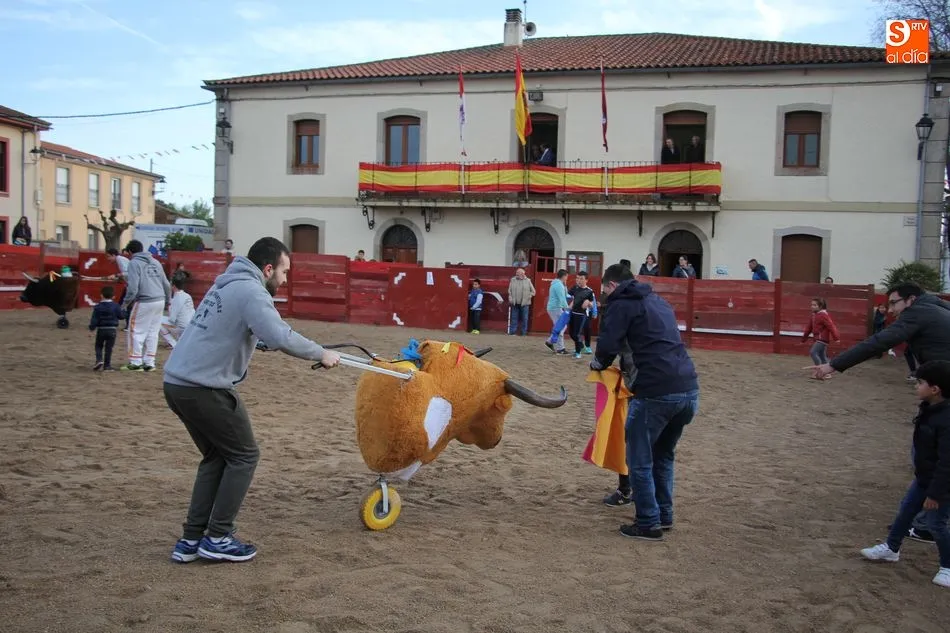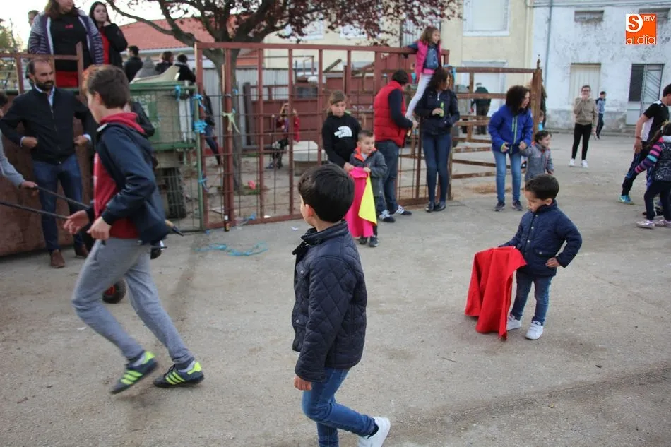 Tras una tarde nublada y a ratos con lluvia que acompañó a la clase práctica de los alumnos de la Escuela de Tauromaquia de Salamanca, quiso salir el sol en Olmedo de Camaces para que los más pequeños pudieran disfrutar de su particular encierro.