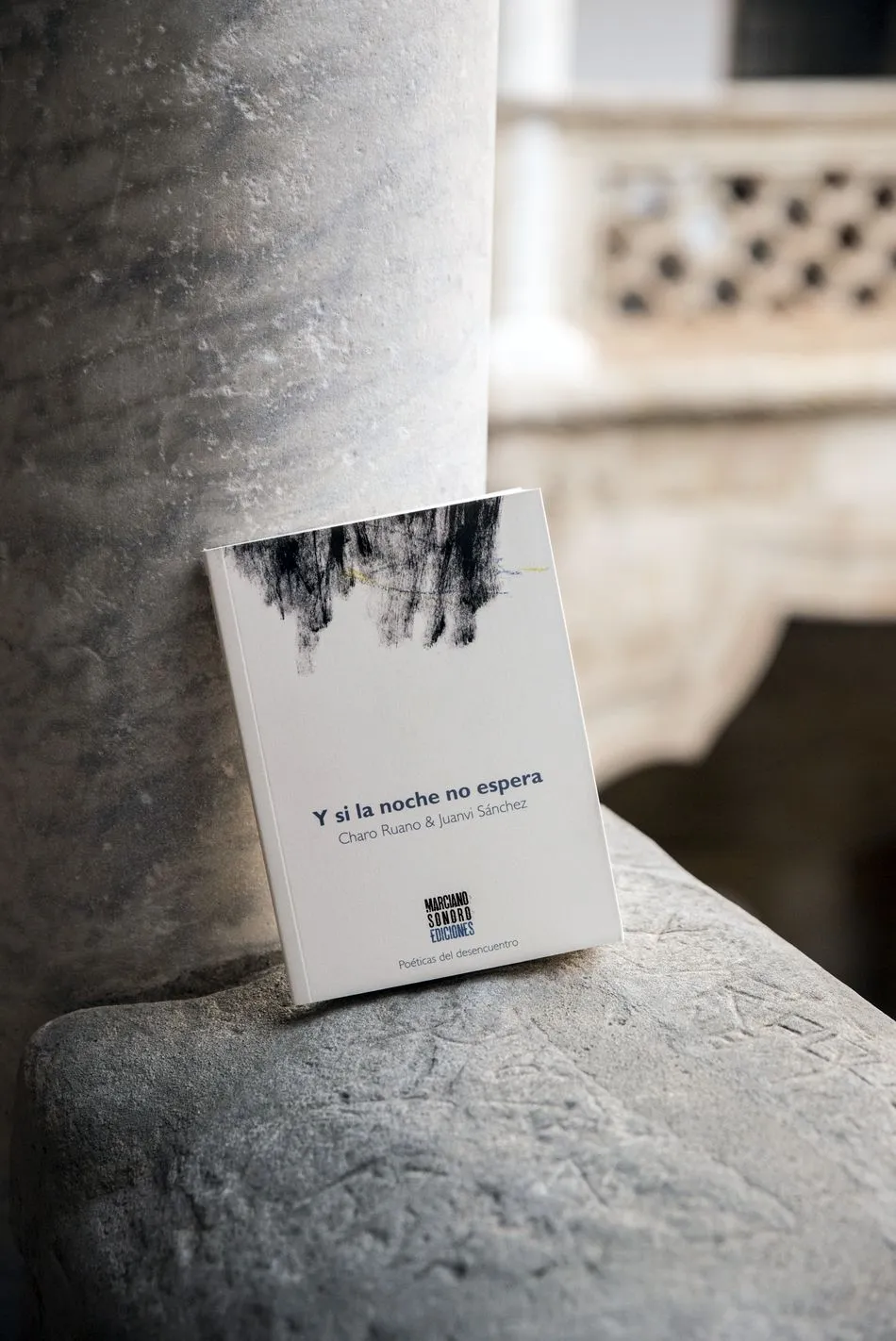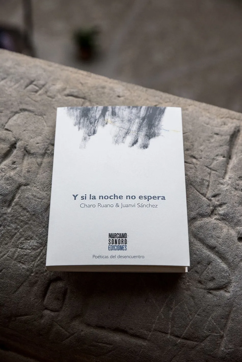 Poesía en la imagen y en la palabra. Y si la noche no espera parte de un juego que se establece cuando la poeta Charo Ruano acepta el reto que le lanza el artista Juanvi Sánchez, al proponerle ilustrar con palabras una serie de imágenes, acompañadas de un breve título. El resultado es un libro de imágenes y poemas que se complementan; con el hilo que le lanza el artista, la poeta va tejiendo el poema.