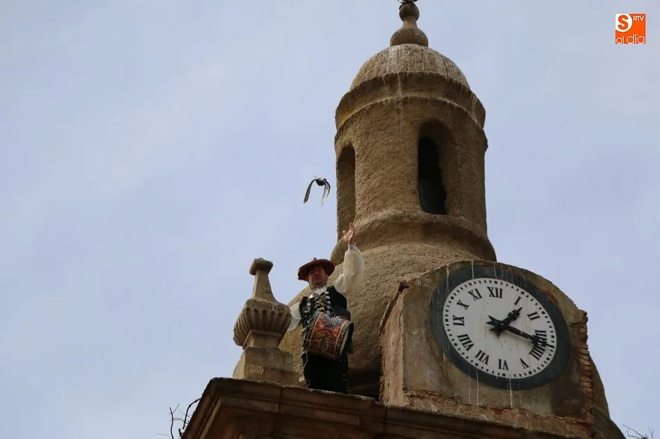 OLMEDO DE CAMACES | El tamborilero subió a la torre del campanario para soltar una paloma y entonar una charrada
