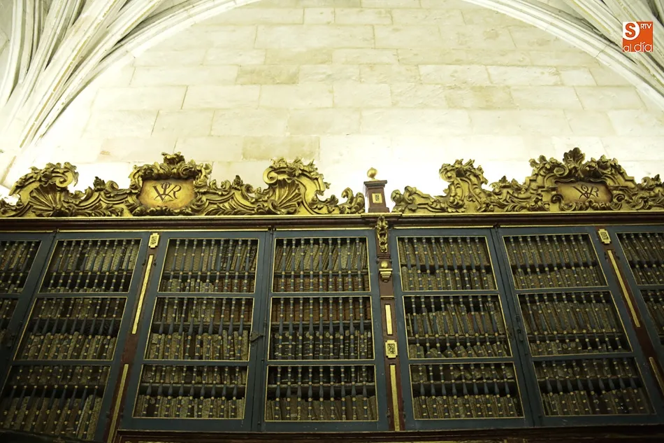 La Biblioteca Universitaria inicia su andadura en el año 1254, fecha en la que la Carta Magna de Alfonso X recoge la creación del puesto de Estacionario, ?una persona vinculada a Salamanca, copista o librero, al que la universidad pagaba para mantener actualizados los cuadernillos con los apuntes de los profesores. Cada uno de esos cuadernillos se alquilaban a los estudiantes?. En el siglo XV aparece documentada la ?primera sala para biblioteca? de la Universidad de Salamanca, bajo las pinturas astrológicas del ?Cielo de Salamanca? de Fernando Gallego. A principios del siglo XVI la biblioteca pasaría a la Antigua Librería, reconstruida en el siglo XVIII y de la que se conservan la reja y el arco de entrada.