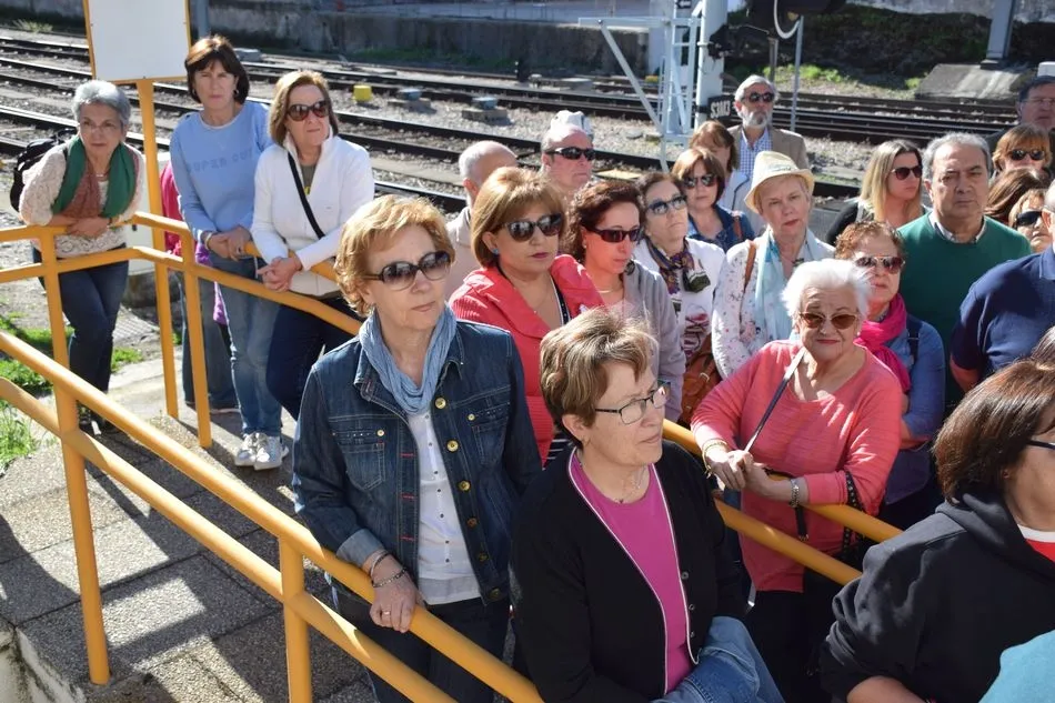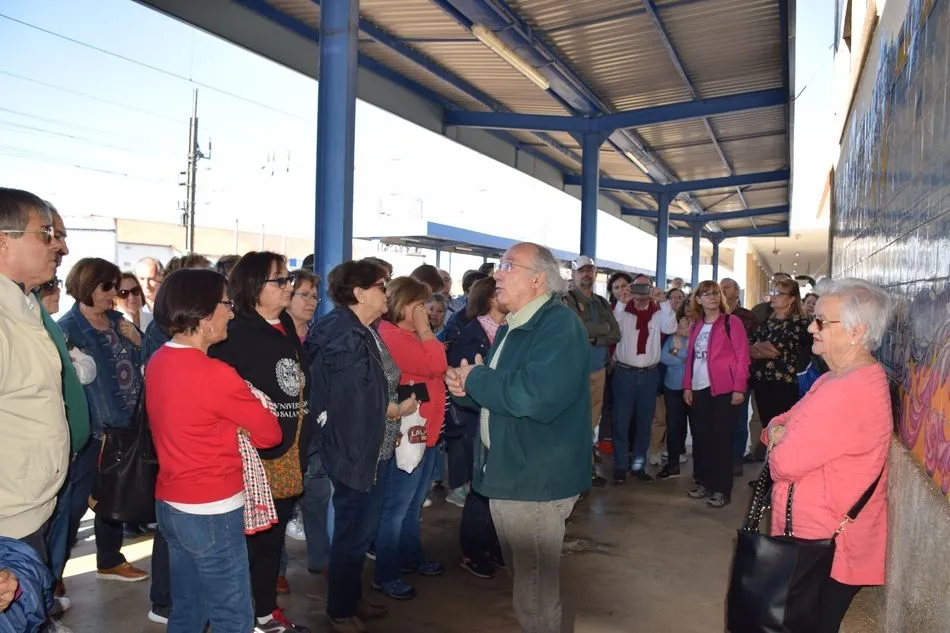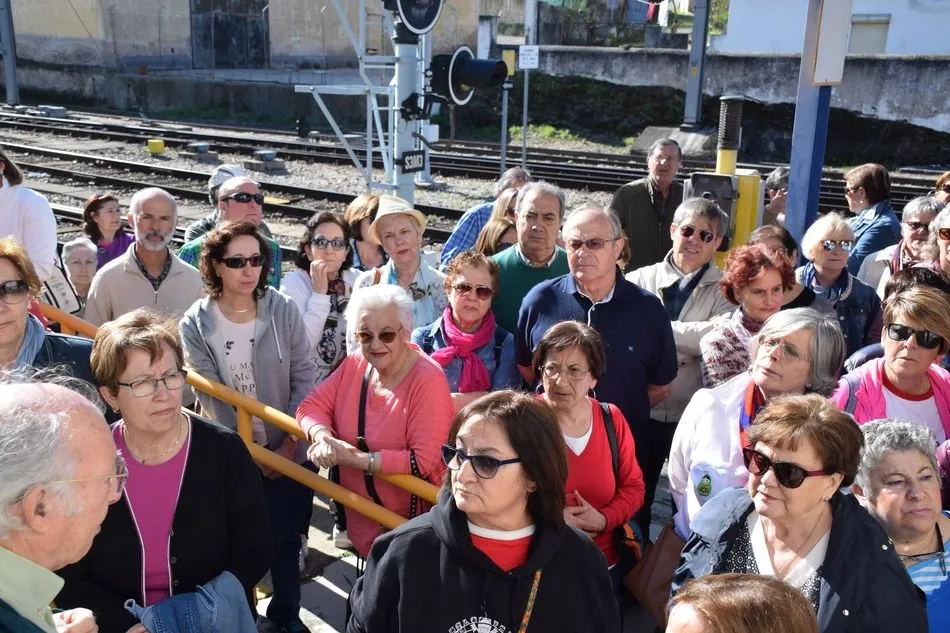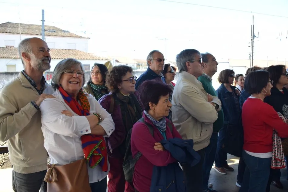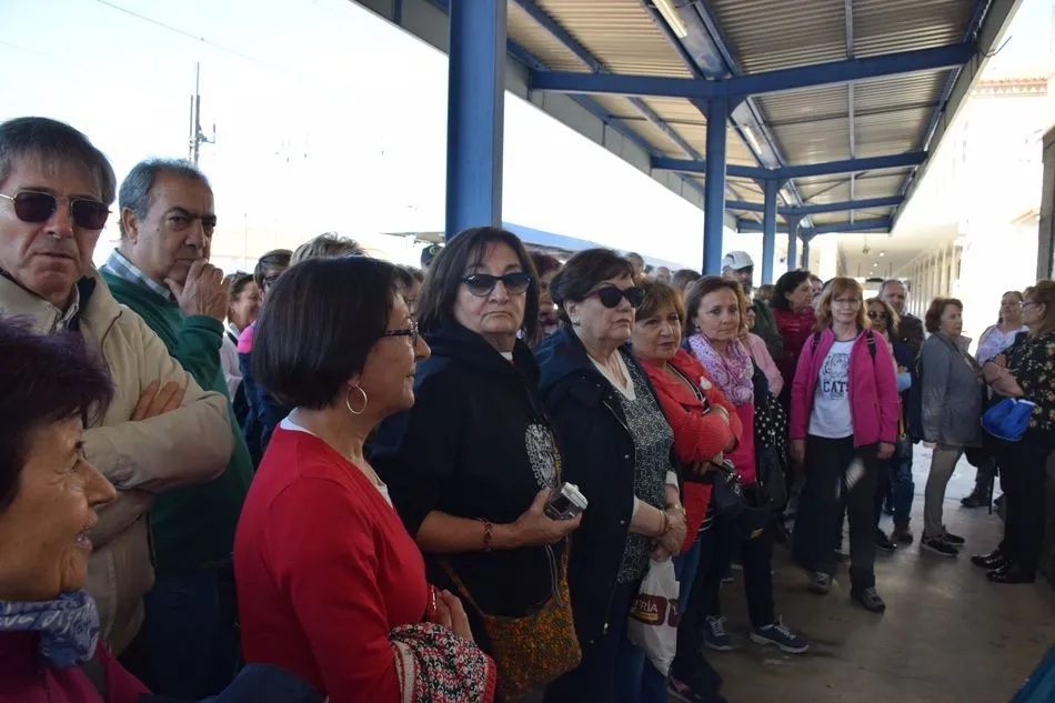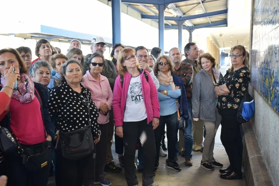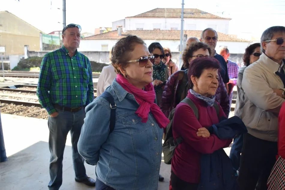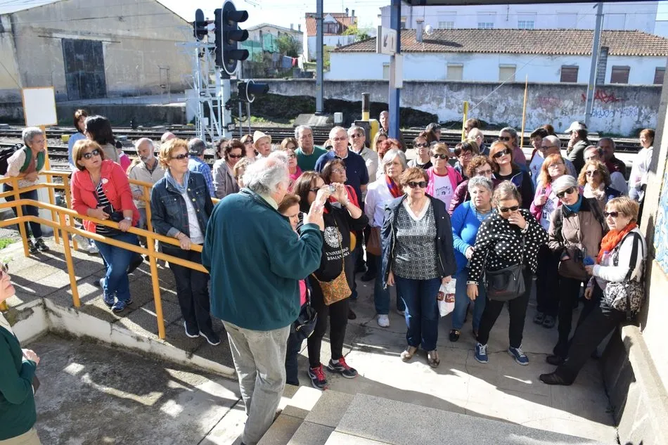 La visita comenzó con una parada en la estación de ferrocarril de Vilar Formoso, puerta de entrada y salida de emigrantes y de perseguidos por motivos políticos, para acercarnos a través de los paneles de azulejos que decoran sus paredes a la historia, ciudades, monumentos y paisajes portugueses, entre otros: Almeida, plano de la red ferroviaria de la Beira, Universidad de Coimbra, Viseu, pastor en la sierra, Convento de Jesús de Setúbal, Fonte das Figueiras de Santarem, Torre de Belem, Catedral de Guarda, etc. El profesor Cabero explicó el significado y la simbología que representan algunos de estos paneles.
