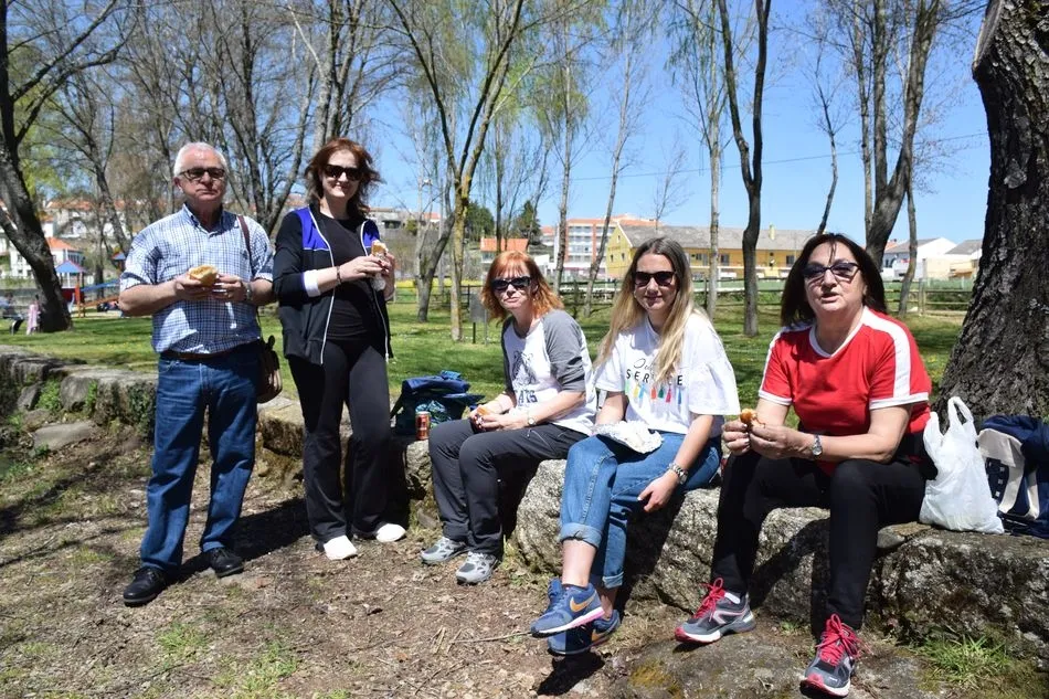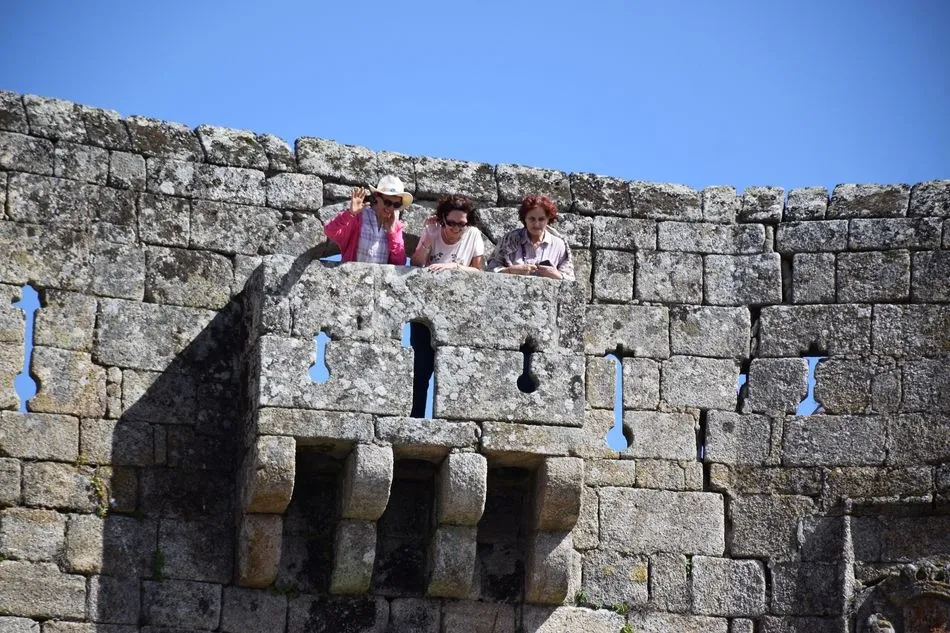 Desde el lugar de aparcamiento de los autobuses, los más osados subieron una empinada escalera que lleva a una explanada frente al castillo. Pasamos al interior de la fortificación, donde recibimos la correspondiente explicación sobre el lugar, resaltando su importancia en las luchas fronterizas y en la consolidación del reino de Portugal. Quienes quisieron y se sentían con fuerzas subieron por las estrechas escaleras de piedra que dan acceso al adarve de la muralla, caminado por ella y llegando a lo más alto de la Torre del Homenaje, donde obtuvieron a correspondiente gratificación visual a su esfuerzo, ya que desde allí se domina toda la fortaleza, la ciudad, el valle y las serranías próximas.