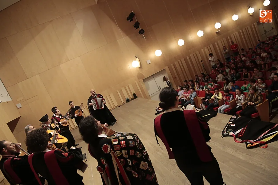 La Universidad de Salamanca, a través de su Servicio de Actividades Culturales, en colaboración con la Fundación Salamanca Ciudad de Cultura y Saberes, ha organizado esta semana una actividad en la que la Tuna Universitaria de Salamanca y la Tuna Femenina Universitaria interpretan sus repertorios para 1.232 alumnos de los colegios de la ciudad.