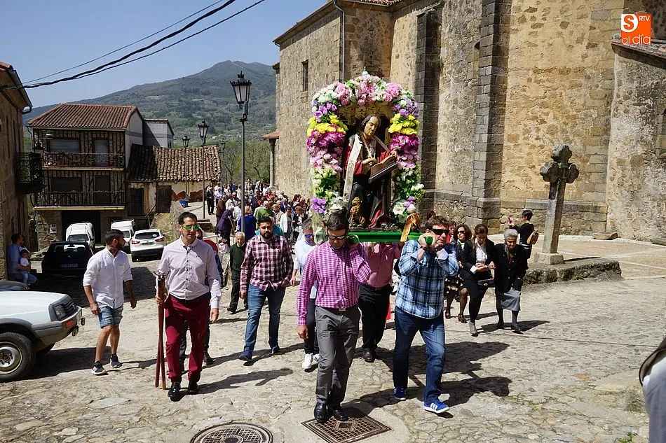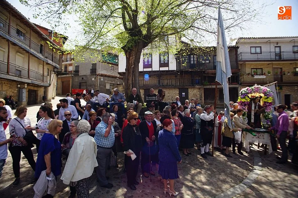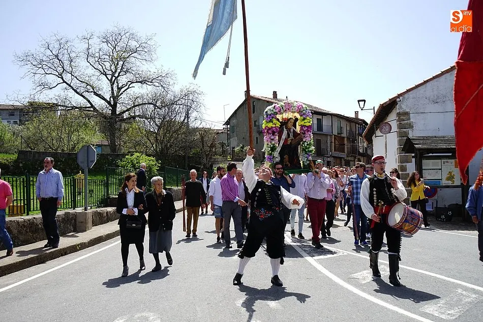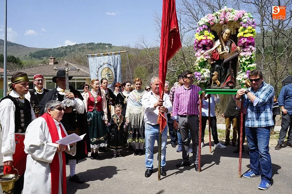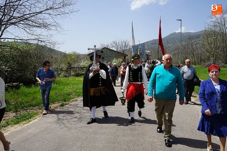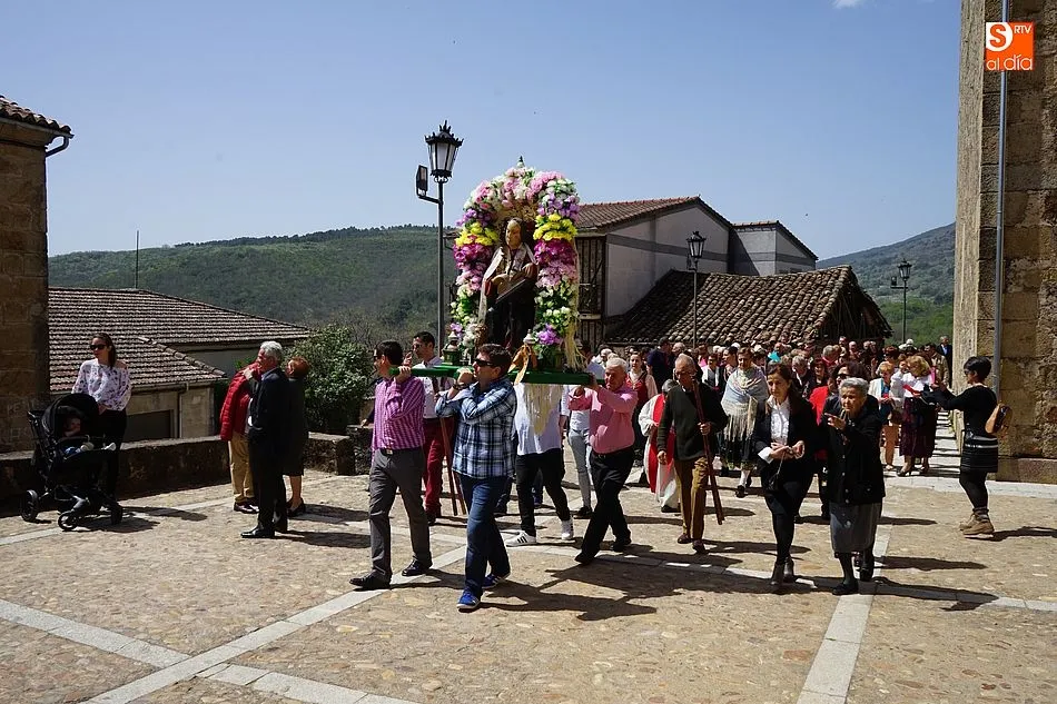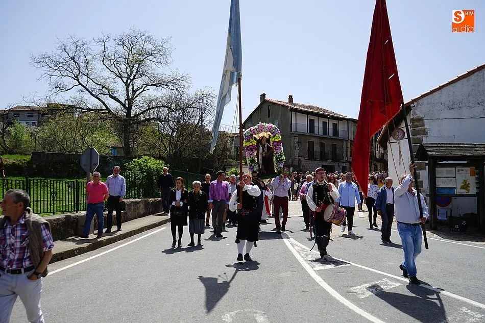 Los colores de la primavera se han unido a los ritmos de la gaita y el tamboril en Cepeda para enmarcar un día grande de los festejos cargado de tradición y sentimiento en la localidad serrana. Tras un fin de semana de actividades y propuestas, llegó el turno del patrón de la localidad, cuya imagen permanecía en la iglesia de la localidad y llegó el momento de devolverla a la ermita. A mediodía comenzó la solemne misa con una iglesia prácticamente llena y con numerosos vecinos ataviados con los trajes típicos.